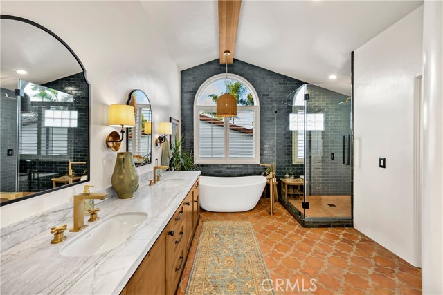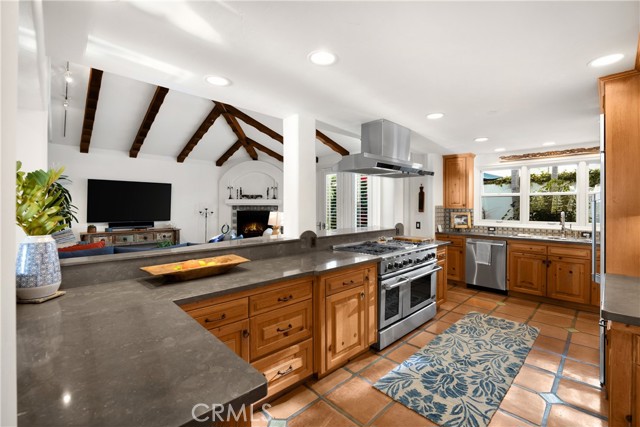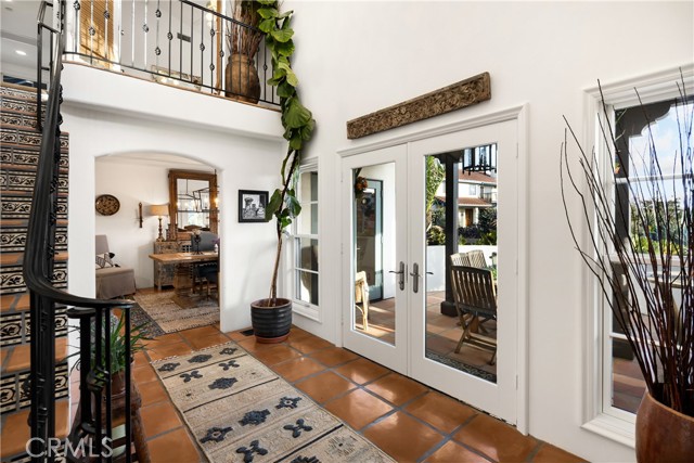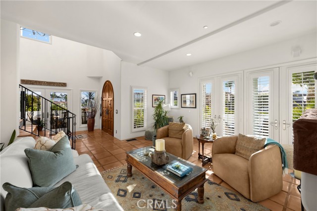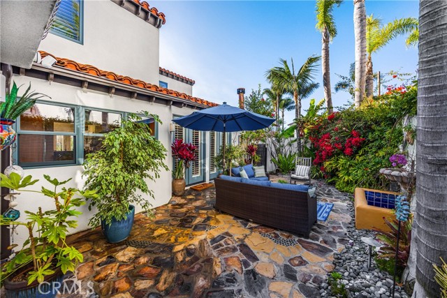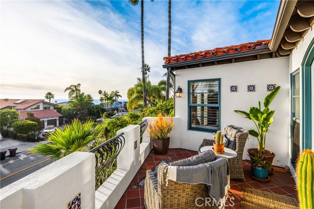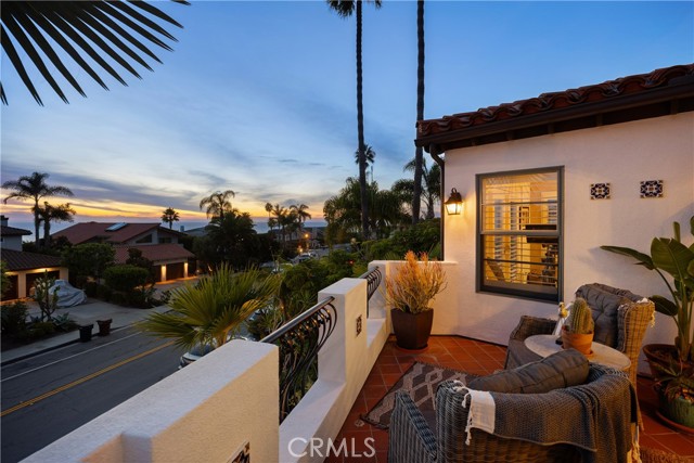 Positioned on Lasuen’s most coveted oceanfront street, this iconic Spanish revival is a showpiece residence. Embodying Ole Hanson’s “Spanish Village by the Sea,” this exquisite offering demands attention with its prominent corner lot location at locals’ favorite beach, ‘Lost Winds’. Dressed in exotic landscaping, the home truly catches the eye. A few properties from the beach access nearby, this home is the quintessential Southwest beach house, just steps from the sand. Featuring four spacious bedrooms (one on lower level) & three bathrooms, this is the ideal floor plan. The chef’s kitchen combines functionality & style with new accent tile, rustic wood cabinetry, stone counters & bar seating, all with top-of-the-line stainless appliances. The kitchen is open to the dining, living & family rooms. Beautiful Spanish fireplaces warm these spaces. Ornate beamed ceilings exaggerate the ascending ceilings in the family room. Spanish tile enhances the stairwell, kitchen backsplash & fireplaces, adding texture & stylish detail throughout. The ocean-view primary suite is simply amazing. Featuring vaulted ceilings, fireplace with reclaimed mantle, dual walk-in closets, a newly-remodeled en-suite bathroom, it’s beyond comfortable. Recently reinvented, the bathroom offers all-new tile, shower enclosure, vanities, fixtures, & stand-alone tub. Through the arched French doors, an ocean-view deck captures views of seal rock, vibrant sunsets, Catalina & the crisp horizon. Also remodeled in Spanish fashion with stylish finishes, the upper guest bath services two generous guest bedrooms with walk-in closets. Newer upgrades & values include: newer custom-built gates, recessed lighting & carpet, refinished ornate wooden front door, a brand-new furnace, outdoor shower, & no overhead power lines. Multiple French doors allow natural light through the home with high ceilings accentuating several interior spaces. Three downstairs patios offer unique outdoor living settings - one covered, ideal for outdoor dining & lounging. Finished in exotic stone & landscaped with mature plantings, the intimate rear patio enjoys a tiled fountain. Walk to Leslie Park or the beach at ‘Lost Winds’ below, take the 2.5 mile beach trail to restaurants, coffee shops, bars, & the iconic SC Pier. A fun bike ride to world-class surf at Trestles. This is an opportunity to make locals' favorite ‘Lost Winds’ beach your backyard at this ideally-located Southwest Spanish beach house!