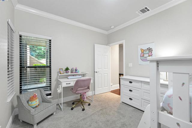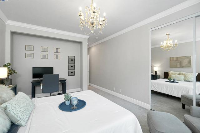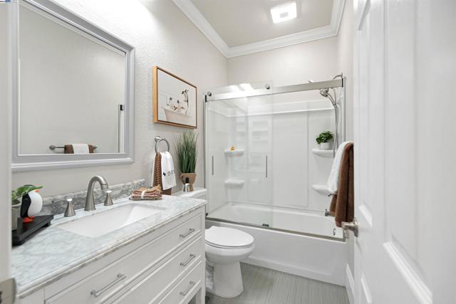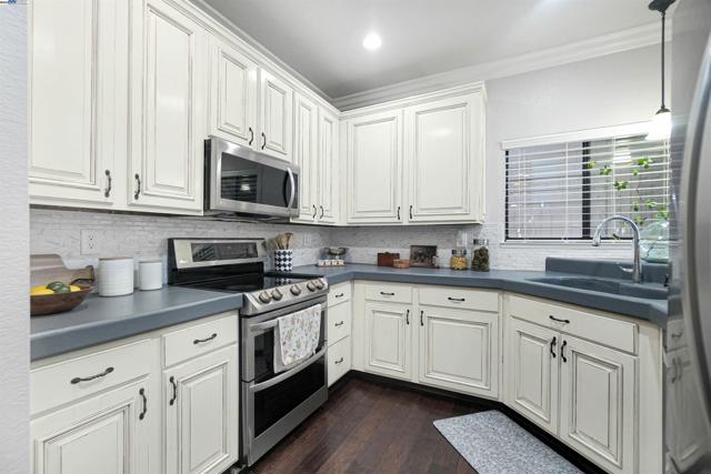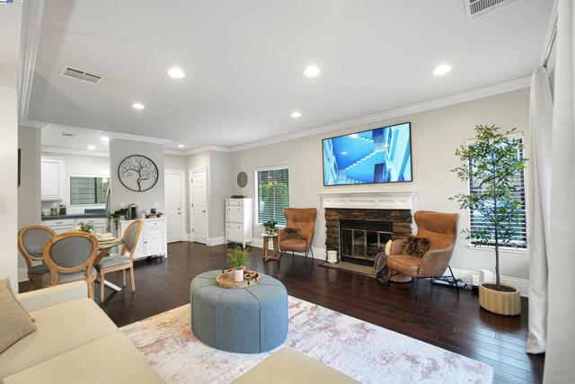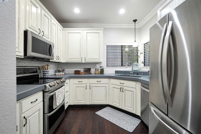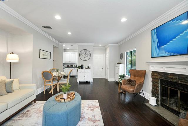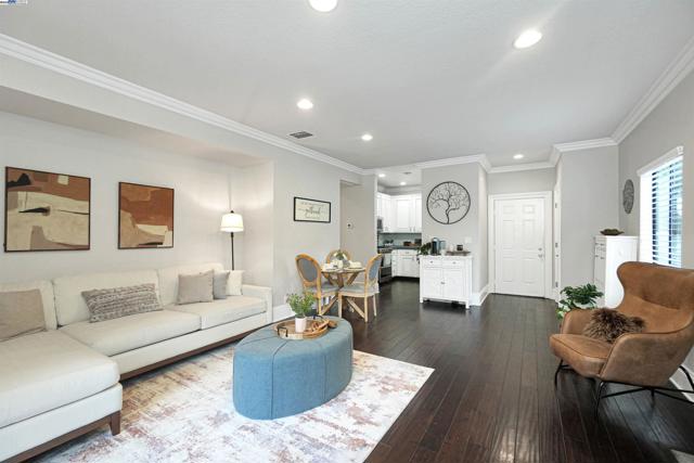 Welcome to Copper Ridge, where everyday living feels calm, comfortable, and surrounded by nature. This inviting ground-floor end unit brings in beautiful natural light and offers an easy, single-level layout that works well for first-time buyers, down-sizers, or anyone looking for a relaxed, low-maintenance home. Step inside to find thoughtfully updated spaces, including updated kitchen and bathrooms, engineered hardwood flooring, stainless steel appliances, LG washer/dryer, recessed lighting, crown molding, and generous 9-foot ceilings that add an airy feel. The private patio offers a peaceful nook to enjoy your morning coffee, and the detached garage provides plenty of room for storage or a workout area. The Copper Ridge community is known for its resort-inspired amenities, including tree-lined walking paths, a clubhouse, fitness center, pool, spa, and tennis courts, creating a balanced lifestyle whether you want to unwind or stay active. You’re just minutes from top-rated San Ramon schools, City Center’s dining and shopping, local fitness studios, golf courses, and convenient freeway connections. Move-in ready, beautifully maintained, and located in one of San Ramon’s most desirable gated communities, this home makes everyday living feel effortless.