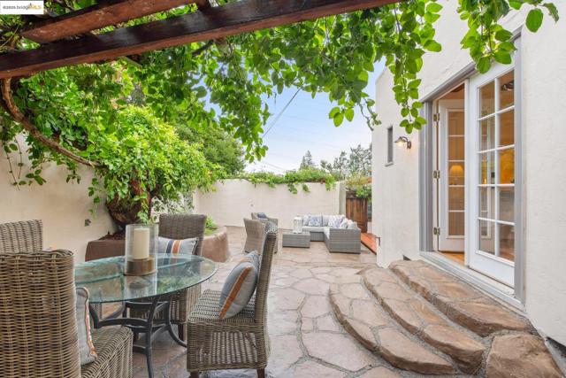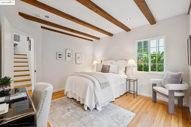 New Listing. Elegant Glenview Mediterranean perched on a sun-drenched hill with refined architectural details. The experience begins in the light-filled living room with wood beamed ceiling, custom hearth and a large arched picture window. The living room flows seamlessly into the formal dining room. The chef’s kitchen with peninsula island enjoys and easy connection to the dining room making entertaining a breeze. The kitchen features stainless appliances and ample counterspace for the chef to create. An adjoining eat-in area offers the perfect space to start your day. There are two spacious bedrooms and a conveniently located hall bathroom on the main level. One bedroom includes French doors that open to the charming backyard. Upstairs, you’ll find two additional bedrooms, each with Bay views and a second bathroom. Completing the home is a large storage room, laundry area and interior access to the garage. Convenient to shops, restaurants, parks and transportation. Open Sunday 2-4:30PM