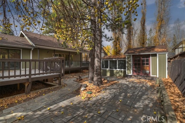 Discover the perfect blend of comfort, convenience, and versatility in this beautifully updated single-story home with a bonus ADU, ideally located in central Fox Farm. Set on an oversized cul-de-sac lot, the property offers inviting outdoor spaces, including a generous front and back yard and a charming covered porch—great for relaxing or enjoying mountain living at its best. The main home features 3 bedrooms and 2 baths, highlighted by a warm and welcoming living room with a stunning floor-to-ceiling brick fireplace. The updated kitchen includes newer cabinetry and direct access to the expansive back deck, where you can unwind and breathe in the fresh mountain air. The attached ADU adds incredible flexibility, offering a spacious studio complete with a full kitchen and an elegantly updated bathroom—ideal for guests, extended family, or additional income potential. Additional amenities include an attached two-car garage, indoor laundry, dual-pane windows, natural gas heating, and two convenient storage sheds. Whether you're seeking a full-time residence or the perfect mountain getaway, you’ll appreciate the easy level access and central location in desirable Fox Farm.