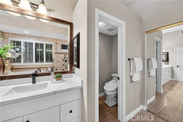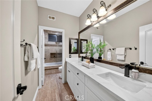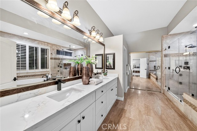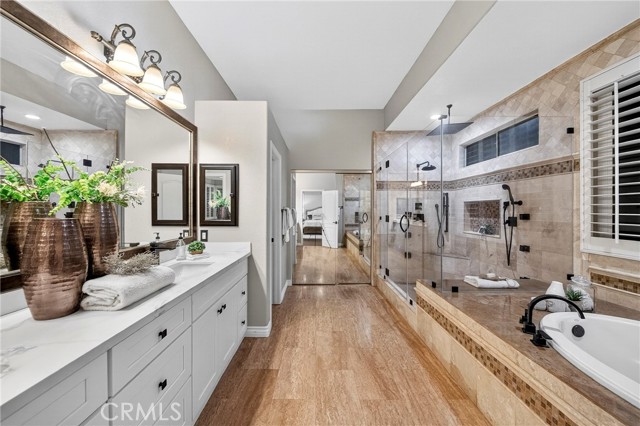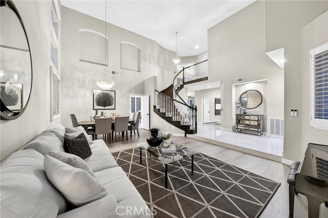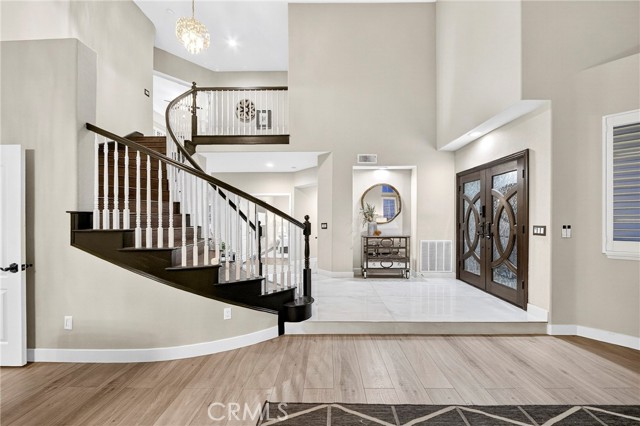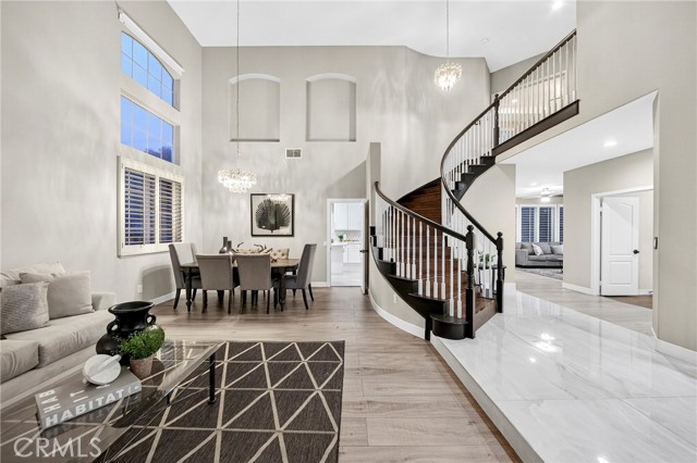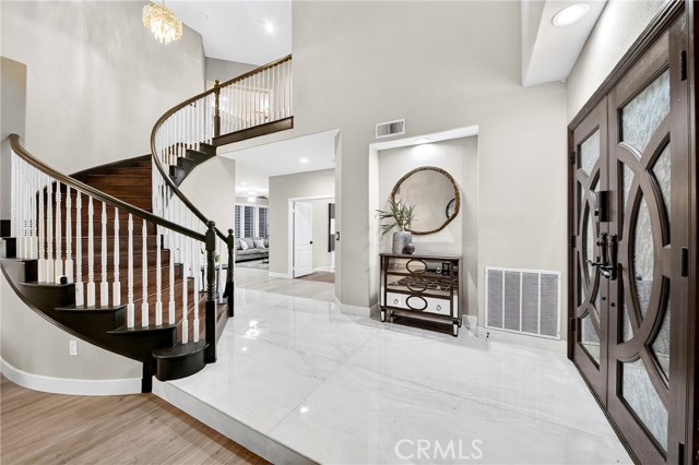 Experience elevated living in this elegantly remodeled residence nestled in one of Chino Hills’ most prestigious neighborhoods. From the moment you enter, soaring high ceilings, refined crown molding, wood flooring, and custom plantation shutters create an atmosphere of timeless sophistication. The chef-inspired kitchen showcases high-end stainless steel appliances, crisp white cabinetry, designer finishes, and a beautifully open layout that flows seamlessly into the living and dining areas. All bathrooms have been luxuriously remodeled with premium materials and thoughtful details throughout. The expansive primary suite offers a serene retreat with abundant space and comfort. The upper level features four bedrooms plus an impressive bonus room, ideal for a home theater, game room, or private office. The inviting family room is centered around a stylish fireplace, while the backyard offers a covered patio perfect for elegant outdoor dining and year-round enjoyment. Set within a highly sought-after community known for its tranquility and convenience to parks, shopping, and award-winning schools, this exceptional home combines modern luxury with everyday comfort.
