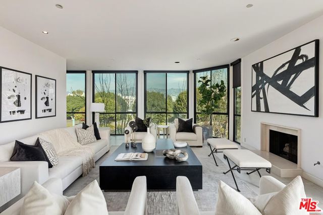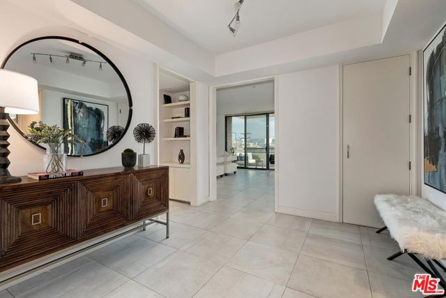 A modern, one-of-a-kind residence, this premier corner home is the largest Plan two-bedroom + den layout at the coveted IV Seasons Condominiums in Beverly Hills. Set on a quiet, tree-lined street, this residence is a refined contemporary aesthetic and exceptional attention to detail. Floor-to-ceiling windows wrap the residence in expansive 280-degree views from the Hollywood Hills to Beverly Hills and vibrant eastern sunrises, filling the interiors with natural light. Oversized white porcelain tile floors and streamlined built-in library cabinetry create a clean, modern backdrop, while the spacious terrace extends the living space outdoors with effortless flow. The formal dining area and sleek galley kitchen are designed for today's lifestyle, featuring modern cabinetry, and a bright breakfast room overlooking lush park treetops and the city skyline. The primary suite offers a calming, contemporary retreat with a custom walk-in closet, freestanding soaking tub, and an oversized glass-enclosed shower. The second bedroom suite mirrors the same elevated design with a custom closet and stylish ensuite bath. A flexible den serves perfectly as a home office or media lounge, and the redesigned laundry room adds everyday convenience with a modern edge. Residents enjoy full-service amenities, including 24/7 doormen, valet parking, a newly renovated pool and spa, fitness center, and additional storage. All just moments from the best shopping, dining, and experiences Beverly Hills and the Westside have to offer.
