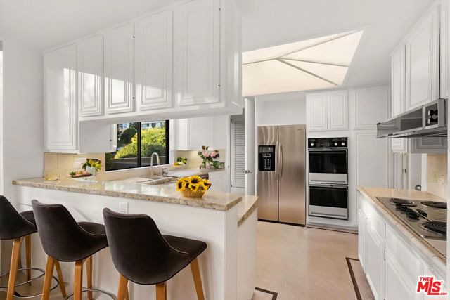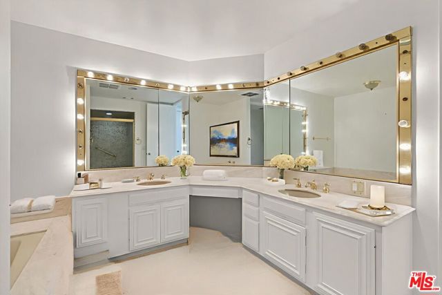 Welcome to the prestigious community of Century Hill, located in the heart of Century City. This first-floor single-level condominium offers an artful floor plan providing the perfect balance of open entertaining spaces and a separate bedroom wing for privacy. As you enter, a grand living room filled with natural light greets you. Two sets of tall sliding doors open onto a large veranda running the length of the LR & DR and can accommodate tables, chairs, and chaise lounges. Completing the area is a fireplace, a wet bar, and a discreet powder room. The breakfast area, which opens onto the kitchen, is perfect for enjoying morning coffee while taking in the view of mature trees and blue skies through the oversized windows. Transform the kitchen into a chef's delight and enjoy dining in the dining area or on the outdoor patios. Relax at the end of the day in an ample-sized primary bedroom complete with high ceilings, a private patio, and an en-suite bathroom with a walk-in closet and second closet, a large shower, and a soaking tub. An additional second suite with an en-suite bath is perfect for guests. This double-exposure corner unit is available for a discerning buyer who values neighborhood pedigree, the lock-and-leave lifestyle, security, and a central location. Amenities, including five pools, a fitness center, a large package room, an indoor driving range, on-site management, tennis courts, high-end security, a clubhouse with a full catering kitchen, and much more, make this an excellent place for a downsizer seeking a lock-and-leave lifestyle.