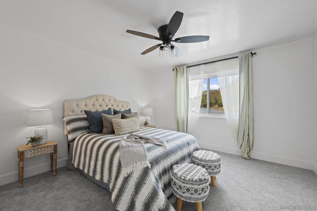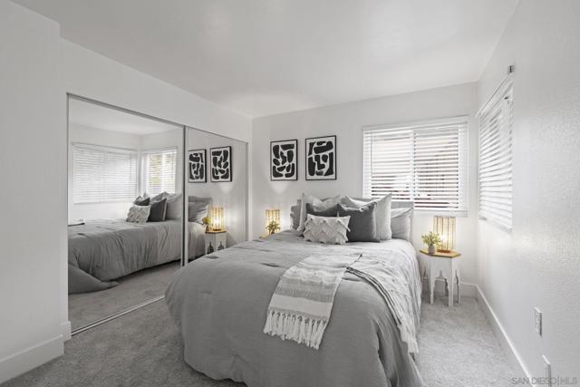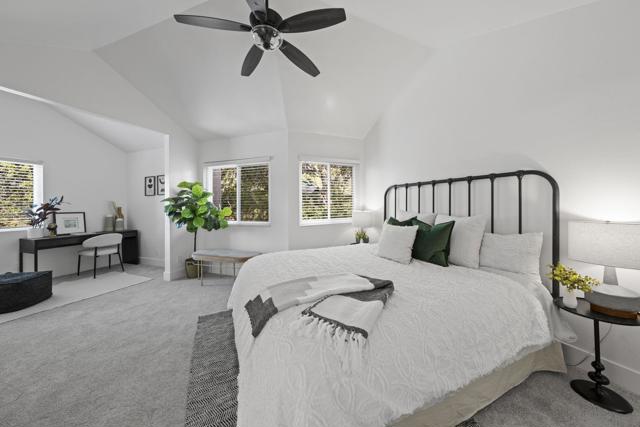 Freshly upgraded and truly move-in ready, this spacious 3-bedroom, 2.5-bath end unit is the largest floor plan in the community, offering 1,316 sq ft of modern comfort and convenience. The entire home has just been painted, and brand-new carpet has been installed throughout—giving the space a clean, updated feel the moment you walk in. Step into a bright, open living area featuring vaulted ceilings, a cozy fireplace, and seamless access to your private patio, perfect for morning coffee, grilling, or entertaining guests. The updated kitchen comes fully equipped with stainless steel appliances—stove, dishwasher, and microwave—all included. Track lighting, modern cabinetry, and a functional layout make cooking easy and enjoyable. The bathrooms offer a warm, contemporary touch with beautifully finished wood cabinetry and upgraded details. Enjoy year-round comfort with central AC, ceiling fans in every bedroom, and the convenience of an in-unit stackable washer and dryer. Tucked away in a peaceful cul-de-sac, this well-maintained community features fantastic amenities: an Olympic-sized pool, tennis court, and a neighborhood park just steps from your front door. Don’t miss this turnkey home in a prime Spring Valley location—perfect for homeowners and investors alike!