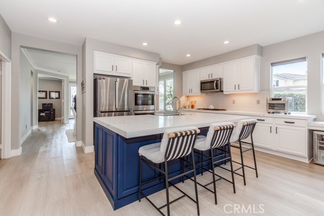 Welcome to this fully turnkey, beautifully remodeled home in the highly desirable Orangecrest community! Every inch of this residence has been thoughtfully upgraded, offering modern comfort, style, and true move-in-ready convenience. At the heart of the home is the stunning, completely redesigned kitchen, featuring an oversized island, upgraded stainless steel appliances, a double oven for the avid cook, a built-in range, and extensive counter space, perfect for both everyday living and effortless entertaining. The open concept design flows seamlessly into the expansive family room and out to the impressive backyard. Situated on a spacious 10,000 sqft corner lot, the outdoor area is a true escape. Enjoy a thoughtfully NEWER (2019) designed pool and spa, cozy fire pits, and a putting green for golf enthusiasts. A built-in BBQ and bar area creates the ideal setting for hosting al fresco, poolside dining, perfect for gatherings and warm summer nights. Inside, the home offers 3 bedrooms + an office + a HUGE upstairs loft, giving you flexible spaces for work, play, and comfortable living. (Upstairs can also double as its own secondary private primary, ideal for multi-generational living!) All bathrooms have been stylishly updated, with the luxurious primary bath featuring a gorgeous soaking tub and a beautifully appointed walk-in shower. The list of upgrades already done for you include: Newer HVAC 2018, Newer Pool/Spa 2019 and a complete kitchen remodel, with stainless steel appliances, quartz counters and on trend backsplash. Turnkey, upgraded, and designed for both comfort and lifestyle, this home truly checks all the boxes. We look forward to seeing you at the Open House!