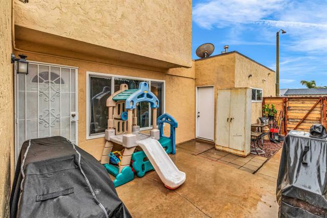 Four-bedroom home with an optional 5th bedroom, offering versatility and space for families, guests, or a dedicated home office. This twin home shares one wall with a neighbor but enjoys the privacy and benefits of a detached residence with no HOA fees. The primary bedroom and full bathroom are located on the main level, along with the optional 5th bedroom, ideal for multigenerational living, remote work, or a playroom. Enjoy a fully fenced outdoor space with a patio and spacious backyard. A 2-car garage, driveway parking, and in-garage laundry add convenience. Located close to schools, public transportation, parks, shopping centers, and major freeways, this home provides easy access to everything San Diego has to offer.