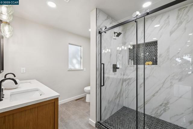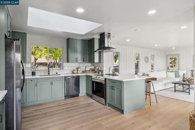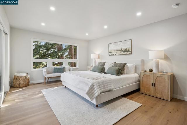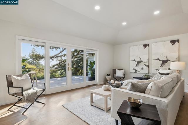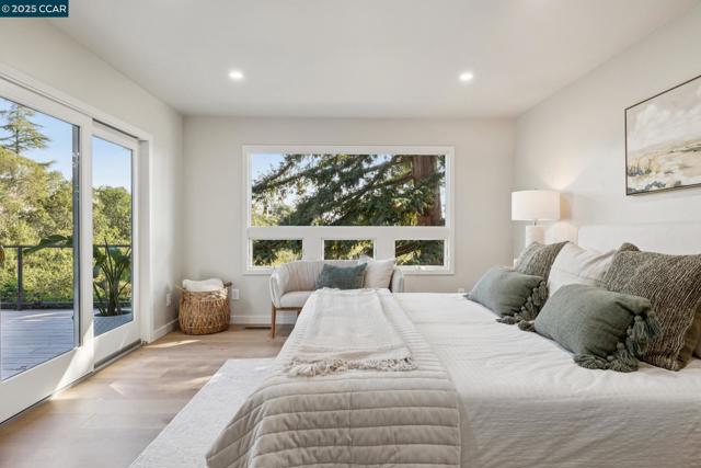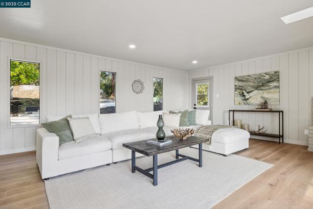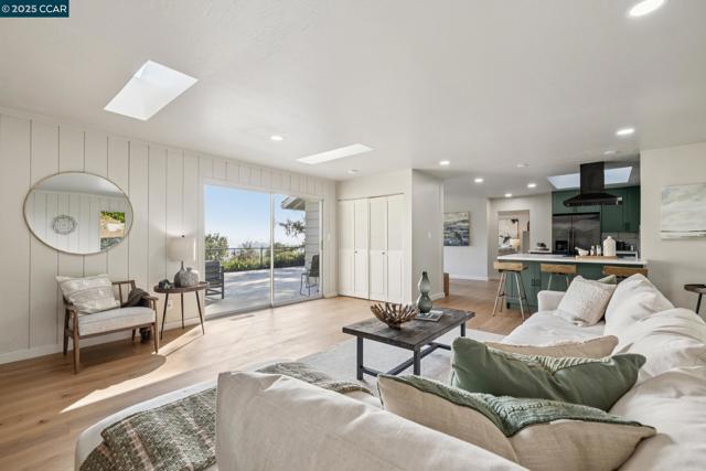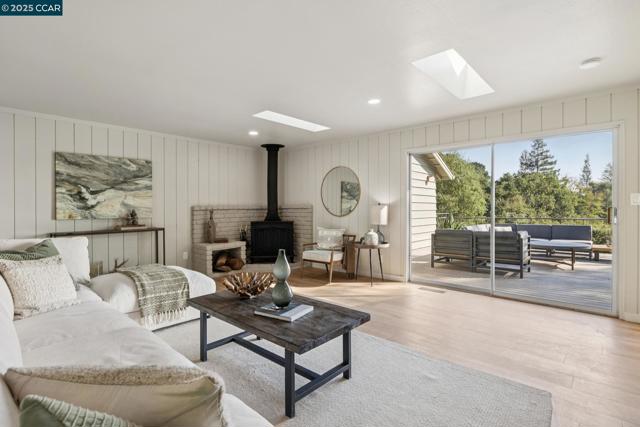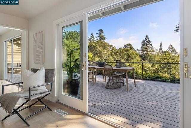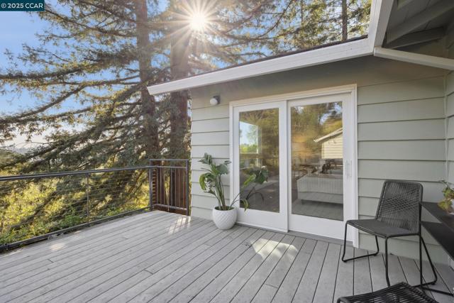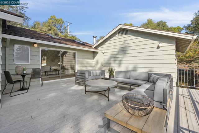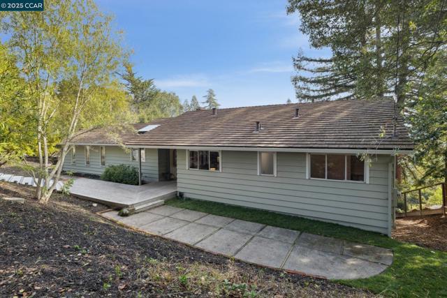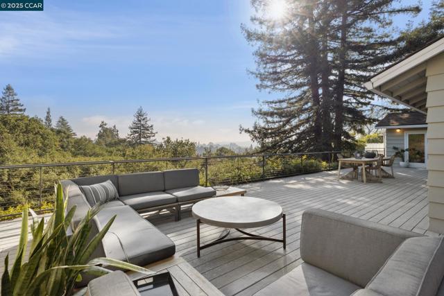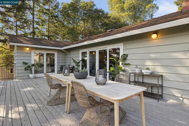 Open house Sat 12-6/ Sun 12-7 from 1pm to 4pm. Midcentury Charm Meets Modern Comfort. Tucked away on a cul-de-sac in Orinda’s beloved Country Club neighborhood, this renovated midcentury gem blends timeless style with today’s comforts. Step into a light-filled living room where a wall of windows captures tranquil hillside views and a fireplace sets the tone for cozy evenings. The open dining area is ready for everything from weeknight meals to festive holiday gatherings. The heart of the home, a beautifully designed kitchen, features new countertops and custom cabinetry, making it as functional as it is elegant. Thoughtful designer details are found throughout, elevating every space with warmth and character. The primary suite opens to the expansive deck through French doors, inviting peaceful mornings and quiet nights under the stars. Two additional bedrooms offer versatility for family, guests, or a home office. Both bathrooms are tastefully updated with a modern touch. Outside, the large deck overlooks a tree-lined hillside oasis—ideal for dining al fresco or simply unwinding. Downstairs, a cavernous unfinished basement unlocks endless potential for a separate guest-ready ADU with a full kitchen and bathroom.