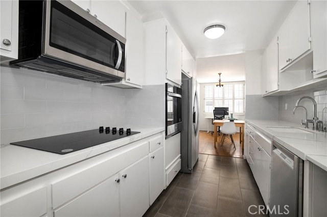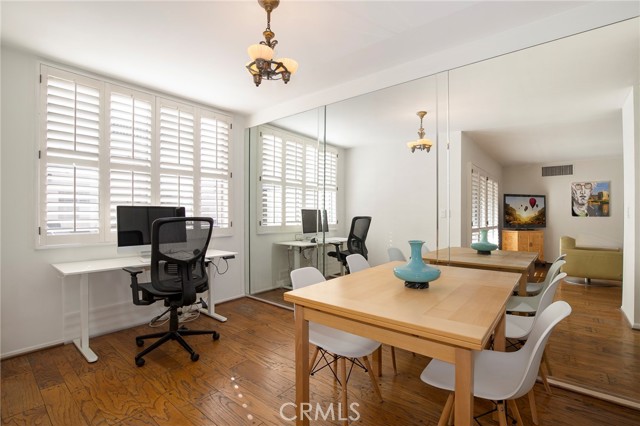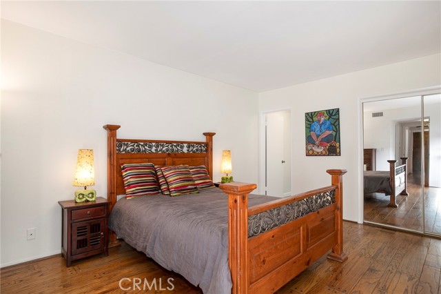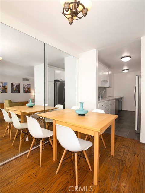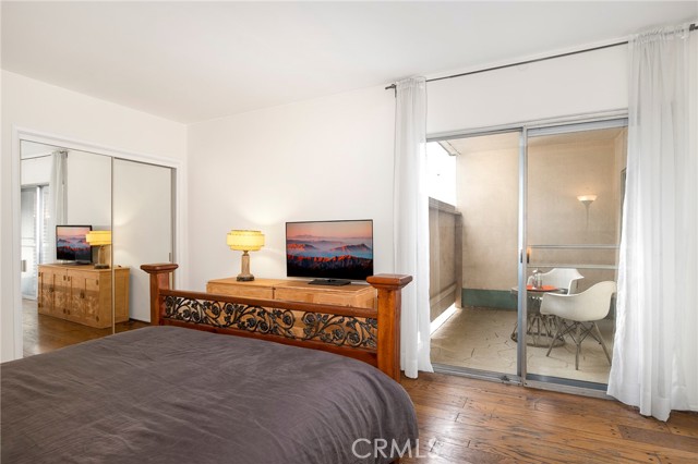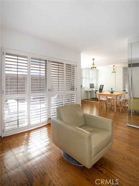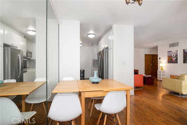 Proud to present this beautifully updated 1 bedroom, 1.5 bath West Hollywood condo offering 966 sq ft of comfortable living in one of the area’s most desirable tree-lined streets. Classic hardwood floors flow throughout, leading you into a bright and spacious living room with sliding glass doors that open to a private, enclosed patio overlooking the sparkling pool—perfect for morning coffee or evening relaxation. The dining area includes a versatile extension that can serve as an office, den, or creative flex space. The modern galley kitchen features quartz countertops, stainless steel appliances, sleek cabinetry, and extended counter space ideal for cooking and entertaining. A convenient half bathroom for guests is a rare perk, while the spacious bedroom also offers direct patio access, two closets—including a generous walk-in—and a recently remodeled ensuite bathroom boasting quartz counters, contemporary tilework, and a glass-enclosed shower. Additional highlights include central heat and air with a newer HVAC system, a Smart Ecobee thermostat, and the option to install in-unit ventless laundry with HOA approval. HOA dues include water, trash, earthquake insurance, high-speed internet, and premium cable. All this in a prime location moments from Trader Joe’s, Gelson’s, Whole Foods, and the endless dining, shopping, and entertainment options along Melrose Ave and Santa Monica Blvd. A fantastic opportunity to enjoy stylish living in the heart of West Hollywood.