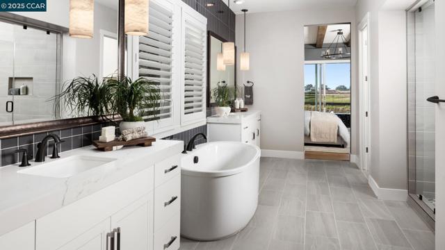 Welcome to Regency at Tracy Lakes 55+ active adult gated community, with luxury living. With three picturesque lakes, this community offers a fishing dock, 1-acre garden and dog park. With a wealth of amenities, including a clubhouse, indoor and outdoor pools, cabanas, a yoga studio, fitness center, bocce ball, and pickleball courts, every day here is an opportunity for relaxation and recreation. Onsite lifestyle director ensures there’s always something to look forward to; from fitness classes to comedy shows and wine nights. Chef's dream kitchen comes complete with a large center island with a breakfast bar, upgraded stainless steel appliances, 48" gas range, modern cabinets, quartz countertops with backsplash. The great room is the perfect setting for relaxation with its cozy fireplace and ample natural light. Primary bedroom suite, with Primary bath complete with dual vanities, soaking tub, and a large shower with a seat. Sizable flex room and convenient workspace. 3-car garage leads to drop zone entry and convienent laundry (photo not of actual home/yard, for marketing only)