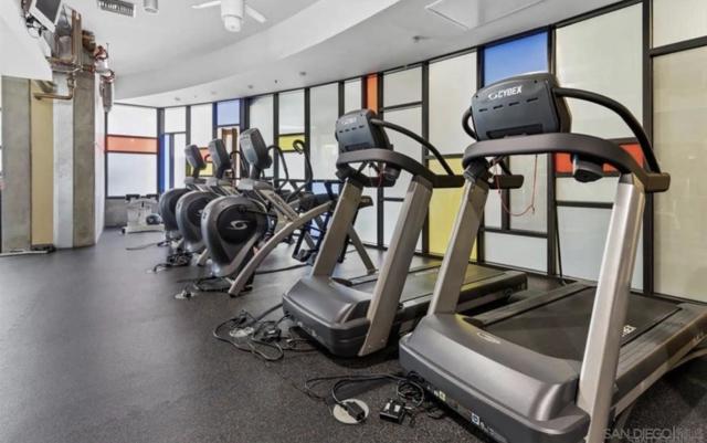 Rare Two Story Walk-Up Unit in the Highly Desirable M2i Building. This modern, reverse floor plan offers a unique living experience with high-end finishes throughout. The spacious primary bedroom features an oversized, fully custom walk-in shower, California Closets build-outs, and wide-plank tile flooring. A stunning spiral staircase leads to the second floor, where 12-foot ceilings and an open concept layout create an inviting atmosphere. Floor to ceiling windows provide abundant natural light, highlighting custom built-in shelving and exposed concrete accents. The kitchen is equipped with a premium LG fridge, complete with a custom ice maker, gas stainless steel cooking and modern fixtures. The private balcony offers city views and overlooks Jacaranda trees. One of the standout features of this unit is the direct access from the downstairs bedroom to the heart of East Village. Step outside your door and immerse yourself in one of San Diego’s most vibrant and desirable neighborhoods, just steps away from trendy restaurants, shops, and the lively energy of the area. The building also boasts a rooftop deck with built-in grills and a fireplace, a newly remodeled fitness center, and a lush interior courtyard. With Petco Park, Michelin-starred restaurant Callie, and the Gaslamp Quarter just blocks away, this unit offers an exceptional blend of modern luxury and unbeatable location.