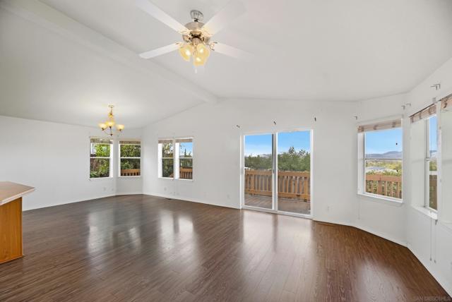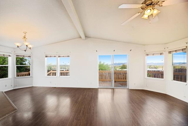 Experience stunning panoramic mountain views from this rare ALL-AGE, LAND-OWNED (which means no space rent!... & 433a certificate!) 3 bedroom, 2 bathroom residence nestled in the gated community of Escondido Views. Built in 2008 this home features spacious rooms, an open-concept kitchen, living, and dining area with tons of natural light. Large wrap around porch with private yard and fruit trees. For a LOW HOA of only $270/month, residents enjoy a range of recreational amenities including a swimming pool and separate kiddie pool, covered spa, cabanas, air-conditioned fitness center, clubhouse with kitchen, recreation rooms with game tables, playground, and basketball court.
