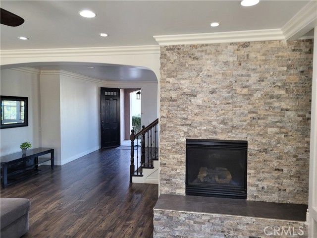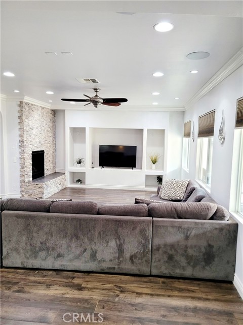 $65,000 Price Reduction!! Incredible opportunity to own a beautifully 6 bedroom, 3 bathroom home located near the top of the Lemon Grove Community in the City of Corona. As you step through the tall front door, you'll be welcomed by a stunning formal living and dining room area, adorned with wood flooring, crown molding, smooth finished ceilings, and a fresh coat of paint. The modern finishes flow seamlessly into a spacious family room that connects to a gorgeous kitchen, creating an open concept floor plan perfect for entertaining. The kitchen features a large island, tile counter tops, and ample storage. The family room boasts a newly refinished brick fireplace and built-in entertainment shelving, equipped with wiring for most smart home automation systems. The upstairs master bedroom is a true retreat with refinished wood flooring and a walk-in closet. The master bathroom includes dual sinks, a walk-in shower, and a separate tub. Additionally, there's a large upstairs loft and a downstairs bed room and bathroom. This property is situated close to shopping and schools, with easy access to the 15 freeway, and it features a low HOA. I encourage you to schedule a viewing soon—this home won’t last long on the market!