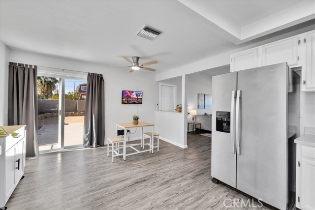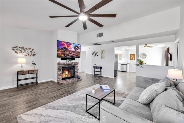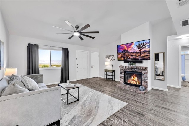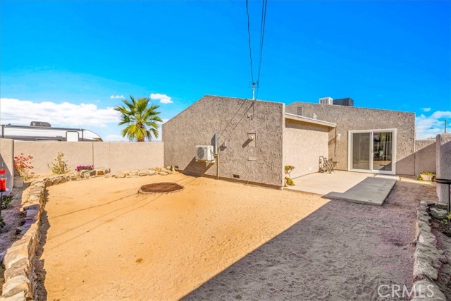 This Lovely Home is a Must-See! Being sold turn-key furnished, this is an amazing opportunity for all! Discover the perfect blend of comfort, style, and functionality in this beautifully updated home situated on a spacious corner lot. Set across from wide-open desert landscape, this property offers sweeping, unobstructed panoramic views to the North, enjoyed from both the exterior and the expansive picture window that brings the scenery right into your living room. Inside, fresh interior paint creates a bright, modern feel throughout. Newer laminate flooring compliments the cool tones. The cozy fireplace makes this the perfect place to unwind after a long day, or to host memorable gatherings with family and friends. This home is packed with upgrades, including a newer roof, newer HVAC system plus energy-saving evaporative cooling, new dual-pane windows, and a new garage door opener for added convenience. Fresh, plush carpeting enhances the bedrooms, while the bathroom showcases a brand-new tub and shower enclosure along with an updated vanity featuring double sinks. For additional comfort and versatility, a mini-split air-conditioning system has been installed in the garage, creating a pleasant environment for doing laundry, tackling projects, or completing everyday tasks. An attractive, large sliding glass door off of the kitchen leads to an inviting courtyard complete with a cozy firepit, perfect for evenings under the desert sky, outdoor dining, or relaxed gatherings with friends. Ideal for those who value outdoor space and versatility, the property features separate fenced areas perfect for pets, gardening, or gatherings with family and friends. With abundant parking, ample enough to accommodate an RV, you’ll have room for all your vehicles, toys, and guests. Move-in ready and thoughtfully improved, this home offers exceptional value, comfort, and unmatched desert vistas, all in one delightful desert package. Conveniently located just minutes from the 29 Palms Marine Corps Base. Don’t miss your chance to make it yours! Call an agent today!