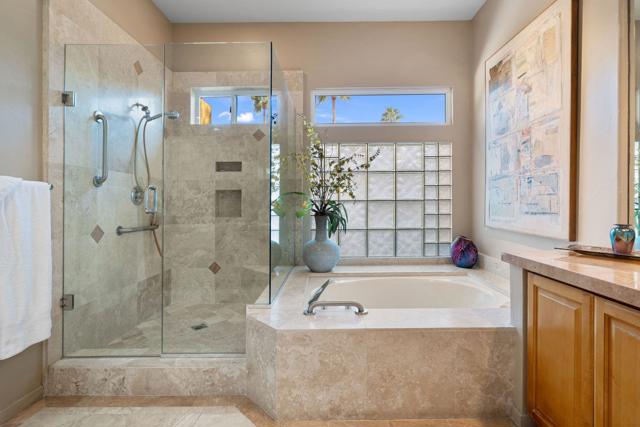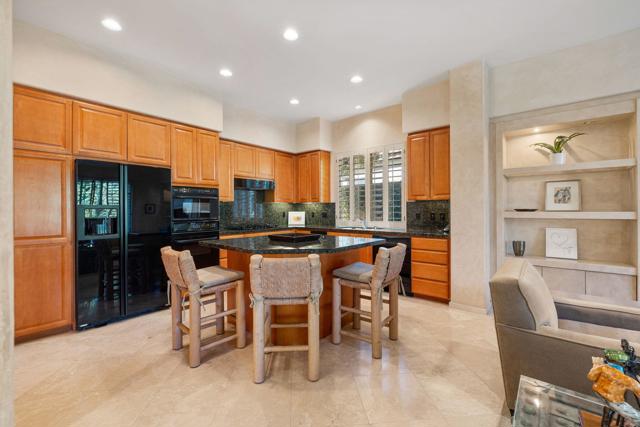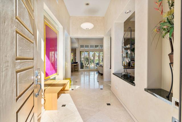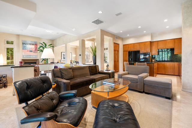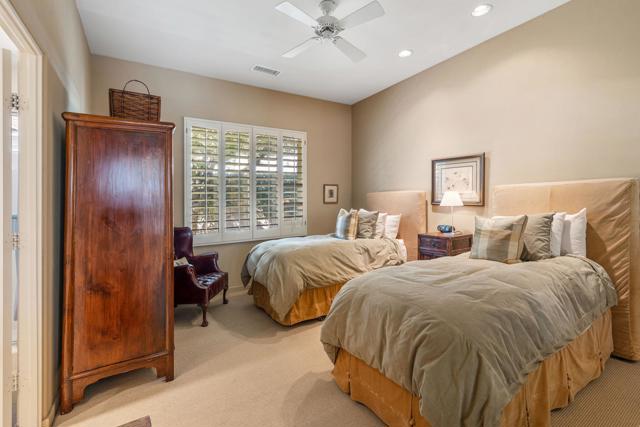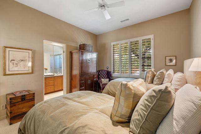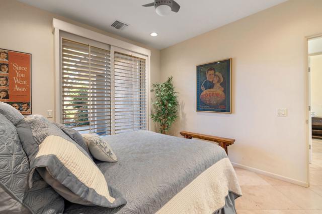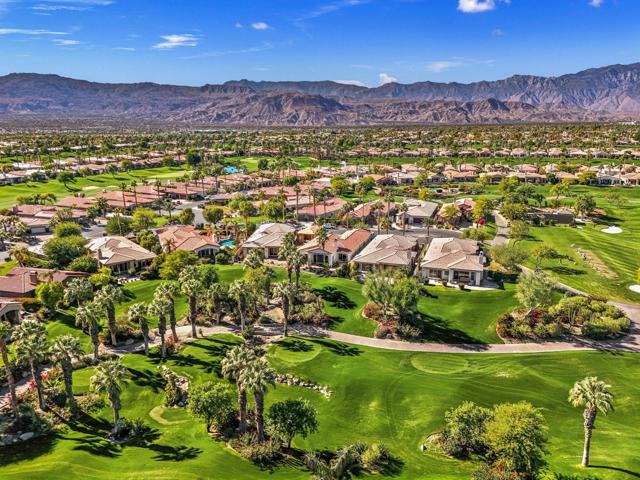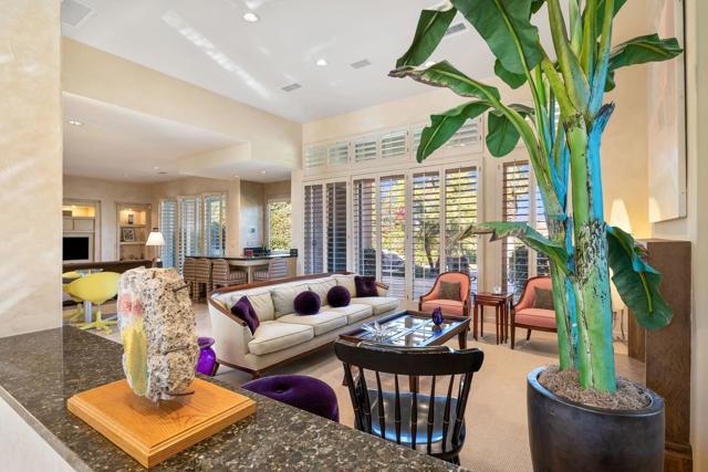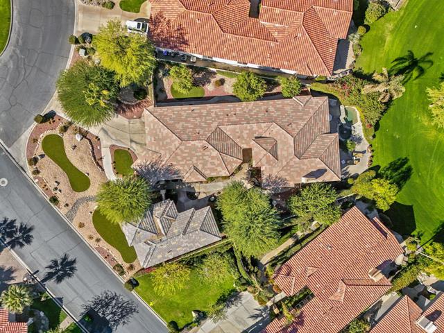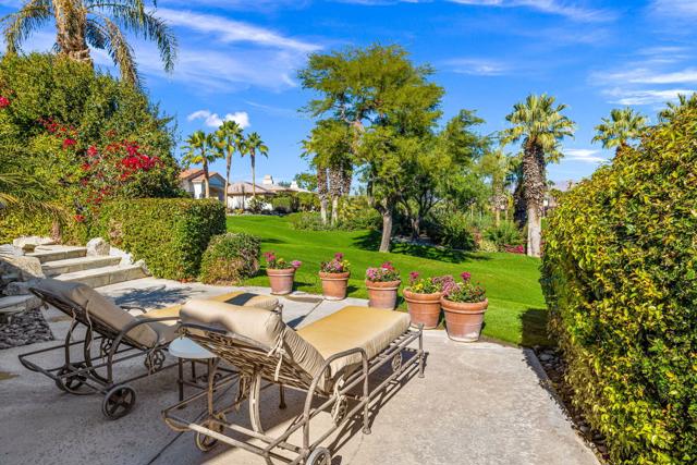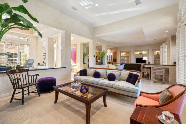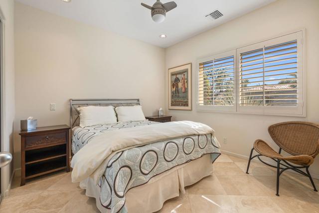 Discover your dream home in Indian Ridge, Palm Desert! This rare Bougainvillea 2 with custom casita sits on a spacious .04-acre corner lot at Dove Run and Tomahawk--a size seldom found in the community. The main house features a well-designed Bougainvillea 2 floor plan with 3 bedrooms, 3.5 bathrooms, and builder upgrades including granite countertops, travertine flooring, surround sound speakers and plantation shutters throughout. You'll find cozy fireplaces in both the great room and primary suite, creating a warm ambiance. Additionally, the property includes a custom-built casita with a comfortable living room, two bedrooms, and a full bathroom--perfect for guests or extended family. Step outside to an expansive outdoor living area featuring a spool, built-in BBQ and a private patio with views of the stunning Chocolate Mountains and a park-like setting overlooking the 18th hole of the Arroyo Course. The drought-tolerant landscaping with turf and rock ensures a low-maintenance, beautiful yard. Just a short distance to the south driving range and community pool, this home offers exceptional space for family living and entertaining. Plus, it's furnished per inventory, and there's no wait for Club membership--your ideal lifestyle awaits!