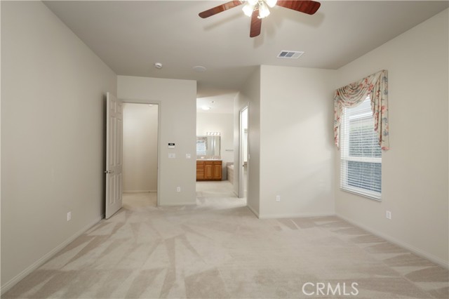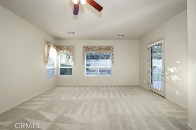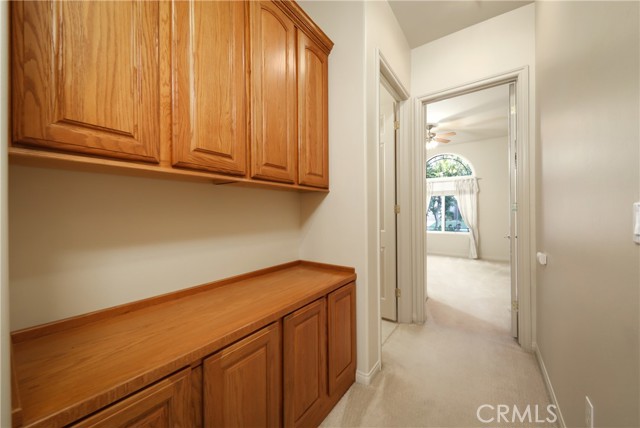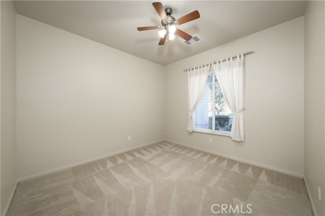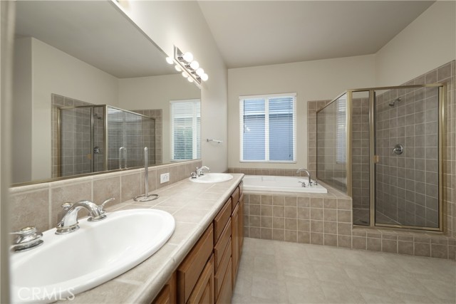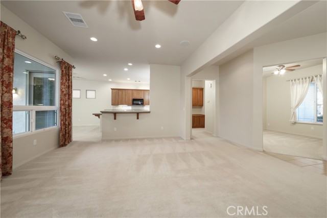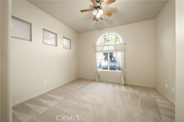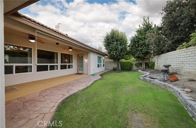This impeccably maintained home in the desirable Seven Oaks Greens 55+ gated community is a true gem! Featuring a spacious split-wing layout with 2 bedrooms + office, 2 bathrooms, and a large family room with high ceilings, cozy fireplace, and surround sound, this home offers both comfort and functionality. Enjoy serene views of the picturesque backyard through oversized windows. The primary suite includes dual vanities, a soaking tub, and two generous closets. The open-concept kitchen overlooks the living area and is ideal for entertaining. Additional features include a 2.5-car garage with built-in cabinetry, alarm system, and a backyard oasis with a peaceful water feature, pull-down shades on the patio, a storage shed, and block wall fencing for privacy. Residents of The Greens enjoy two clubhouses offering an exercise facility, library, kitchen, social hall, putting green, BBQ area, pool, and spaall designed for an active and vibrant lifestyle.