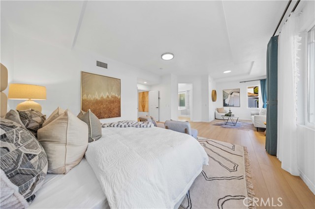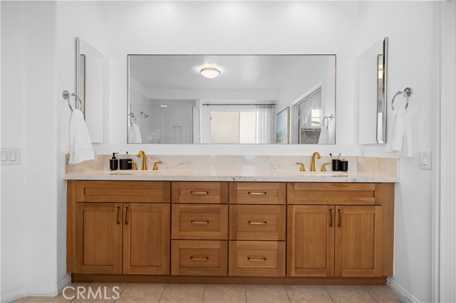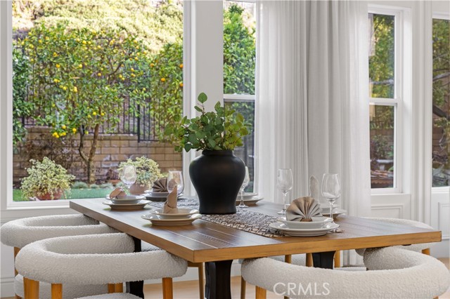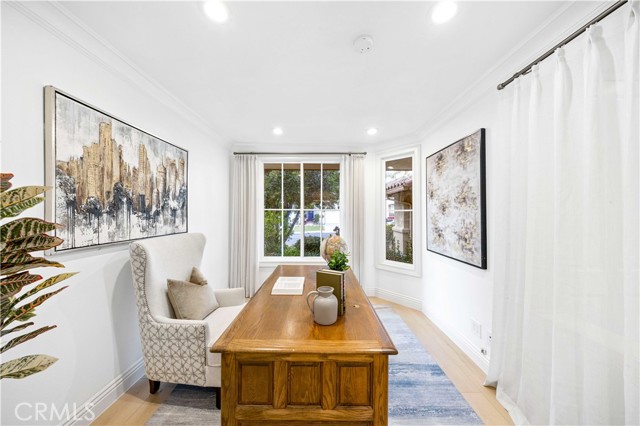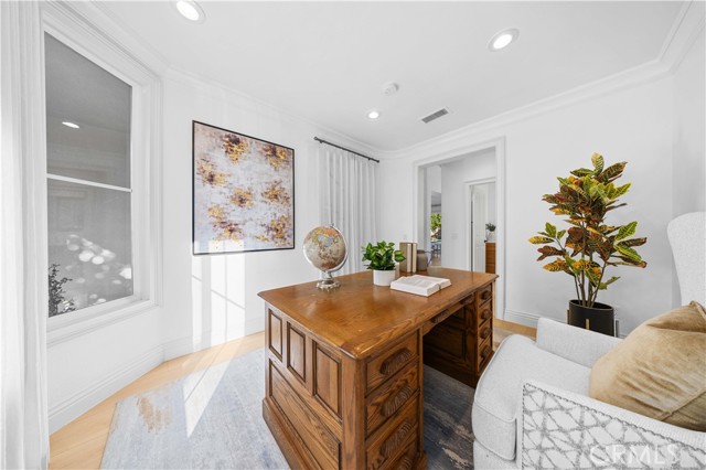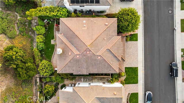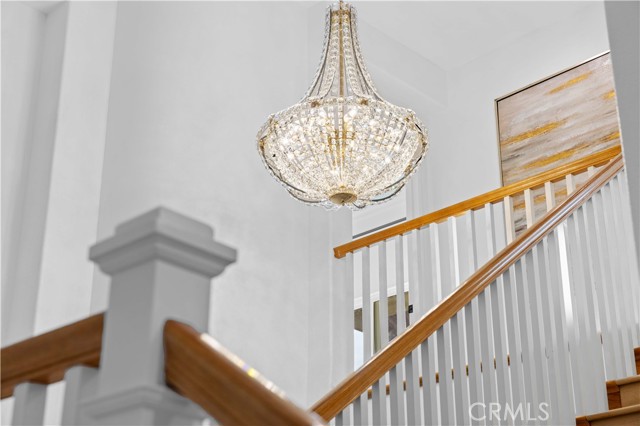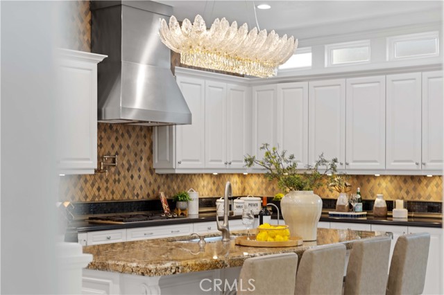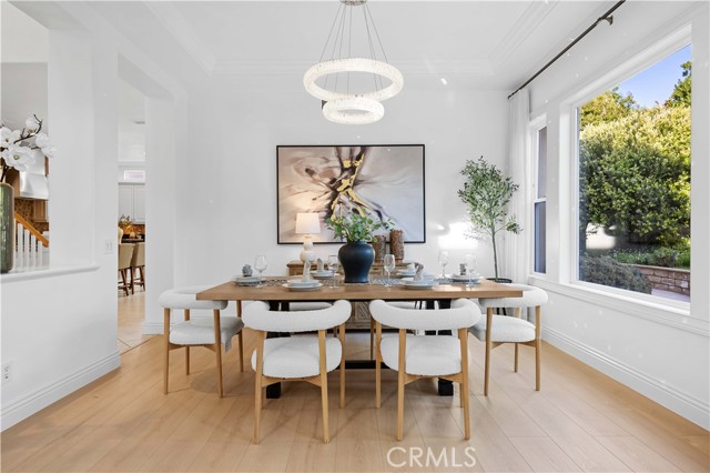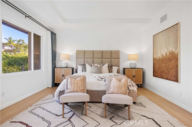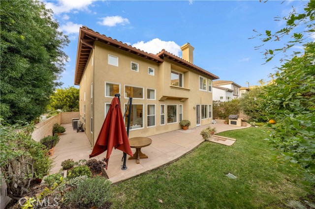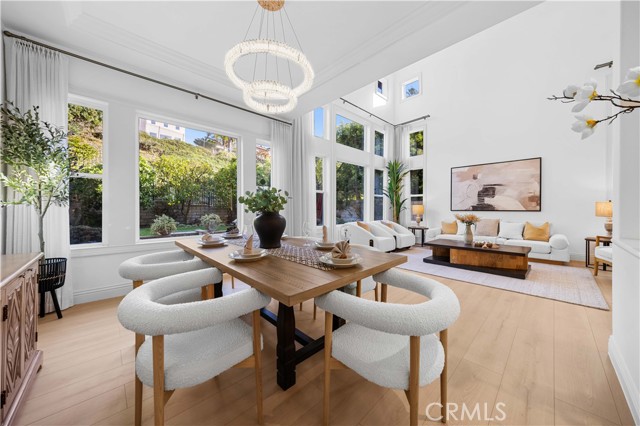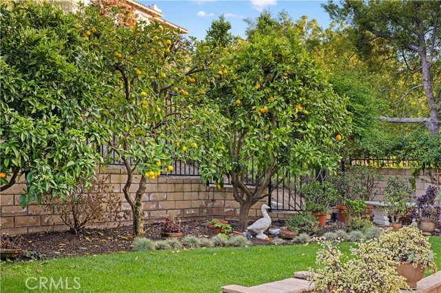 Beautifully upgraded and move-in ready, this elegant home is located in the desirable gated community of San Juan Hills, surrounded by natural open space and the golf course. Recent upgrades include brand-new flooring, new bathroom vanities and mirrors, new recessed lighting, elegant crystal chandeliers, and custom window treatments, giving the home a refreshed modern feel from the moment you step inside. The entry welcomes you with a stunning crystal chandelier and opens to a dramatic two-story living room filled with natural light and decorative wall moldings. Adjacent is the formal dining room with crown molding, offering a seamless flow for gatherings. The upgraded kitchen features a large island with sink and bar seating, granite countertops, designer backsplash, Wolf cooktop, Bosch dishwasher, KitchenAid double ovens, built-in refrigerator, custom hood, and walk-in pantry. The space opens to the bright breakfast nook and warm family room with a fireplace and custom built-ins. On the main level, a private office sits off the living room and can function as a guest bedroom. A full bathroom with a new vanity and mirror is conveniently nearby. The laundry room includes a sink, storage cabinetry, and a window. A dual-entry staircase leads to the second level. An oversized bonus room connects to a full bathroom shared with an adjacent bedroom. Down the hall, another bedroom forms its own private suite with a full bathroom, walk-in closet, and balcony. A hallway with built-in cabinetry leads to the double-door primary suite, located in its own private wing. This expansive retreat includes a sitting area, serene bedroom with backyard views, and a primary bathroom with soaking tub, separate shower, new dual vanities, and a large walk-in closet. The private backyard features mature fruit trees, a built-in BBQ, lawn, patio umbrella, and numerous potted plants. The front yard is also enhanced with beautifully arranged potted plants. Additional highlights include a three-car side-by-side garage with storage cabinets and a workbench.