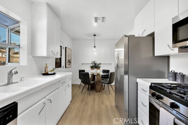 Welcome to 17452 Cantlay Street — a charming single-story home ideally located in the heart of Lake Balboa. Light, bright, and move-in ready, this updated residence blends comfort and functionality with great indoor/outdoor flow. The home features 2 bedrooms, 1 bath, a bright living room with recessed lighting, and a spacious family room lined with windows—perfect for movie nights, hosting friends, or creating a versatile second living space. The crisp white kitchen offers stainless steel appliances, an abundance of natural light, plenty of cabinetry, and a door which leads outside to a private backyard retreat with multiple patios, wide hardscape, and a lush lawn—ideal for gatherings, grilling, or relaxing in the California sun. A long driveway, attached garage, and additional rear parking with room for an RV or toys add incredible flexibility. Fresh finishes, updated lighting, and a thoughtful layout make this Lake Balboa home truly stand out. Close to shops, dining, parks, schools, and major commuter routes, 17452 Cantlay Street delivers the space and lifestyle you’ve been searching for.