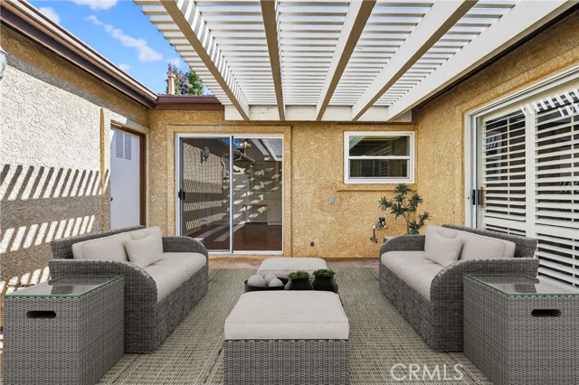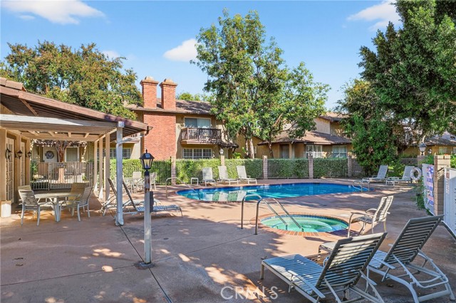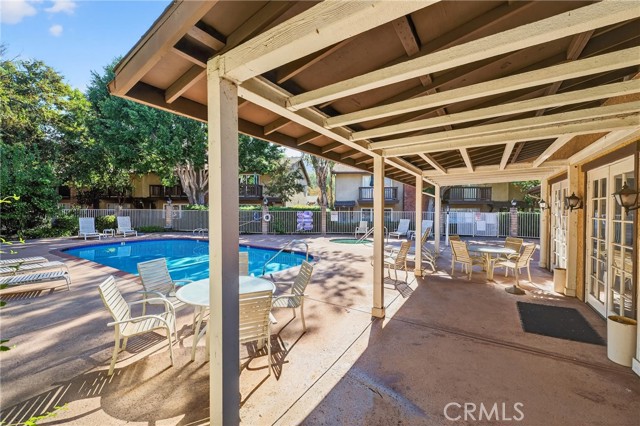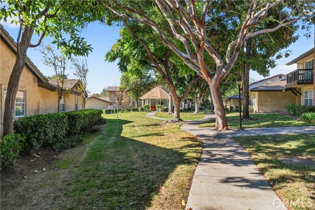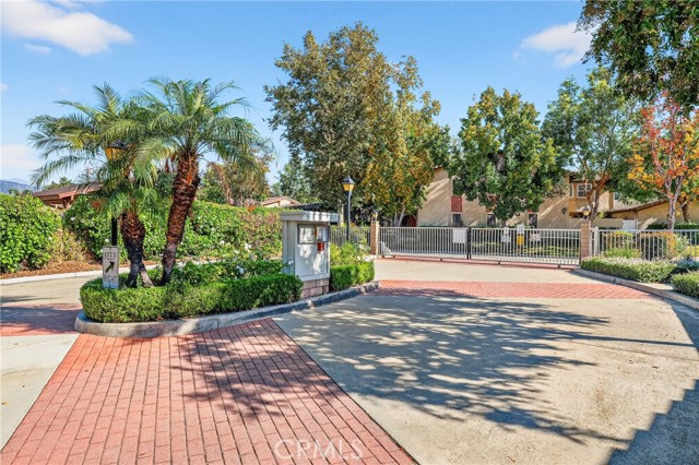 Single Level End Unit in Desirable, Gated, Parkside at Glendora! The formal entry leads to your large living room with high ceilings and a cozy fireplace. Straight ahead is a formal dining room perfect for entertaining as well as an eating nook with access to the private courtyard/patio and a built-in desk and storage all off the light and bright kitchen with appliances, pull out shelving and a pantry. Your laundry room, with even more storage, offers access to the oversized double garage with a large bump-out for a multitude of uses. Back to the front of this lovely unit is a versatile room perfect for a third bedroom, office, playroom or den. Continuing down the hall you find the second bedroom, full bath with skylight and a linen/clothes closet. The private primary suite features high ceilings, two mirrored wardrobe closets, double sinks and soaking tub in the full bath as well as sliding glass door access to the courtyard/patio. Dual pane windows and plantation shutters offer comfort and privacy. The beautifully maintained complex features a pool, spa, clubhouse and walking paths. Close to transportation, restaurants and shopping - add to that a great school district and SINGLE LEVEL WITH NO ONE ABOVE, this unit is hard to beat!