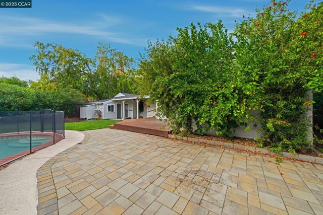 OPEN SAT & SUN 12-4! Nestled on just under a ¼-acre lot, this fully fenced ranch-style retreat offers two bedrooms, two bathrooms, and approximately 1,276 square feet of inviting, light-filled living space. With private gate access and lush outdoor surroundings, this home is equal parts comfort, style, and sanctuary. Enter into a spacious open layout where natural light pours through large windows. The living and dining areas connect seamlessly to the kitchen — featuring granite counters, stainless steel appliances, and a gas range — creating the ideal space for cooking, entertaining, or simply relaxing at home. The primary suite is a true escape, complete with a sliding glass door that opens to the backyard’s beautiful landscaping and pool area — your own private retreat at the end of the day. Both bathrooms have been tastefully updated with modern finishes and timeless design. Outside, enjoy resort-style living with a sparkling pool, multiple lounging patios, and mature trees that create a sense of privacy and tranquility. The detached two-car garage and versatile flex space offer endless opportunities for a home office, gym, or creative studio. Ideally situated in an established neighborhood just minutes from downtown Pleasant Hill, BART, parks, trails, and schools.