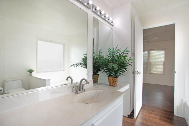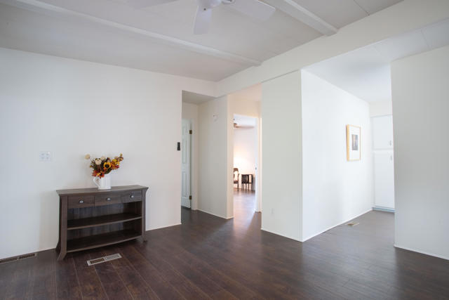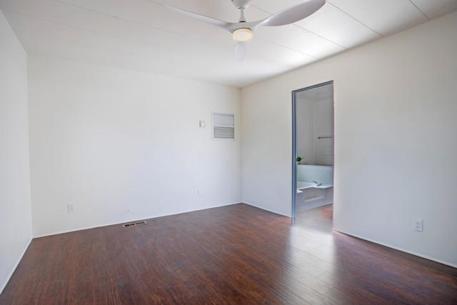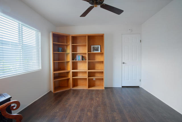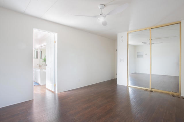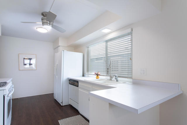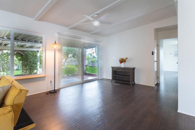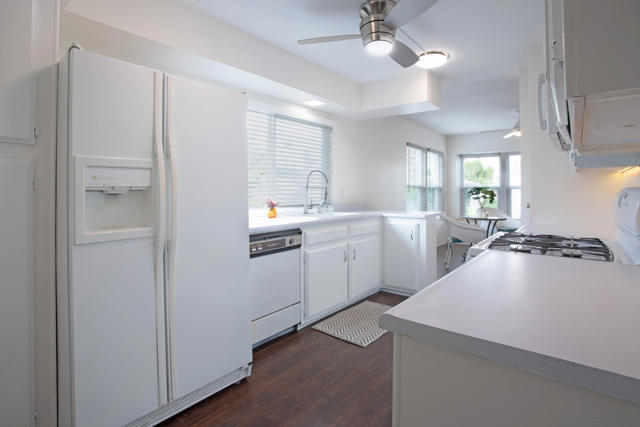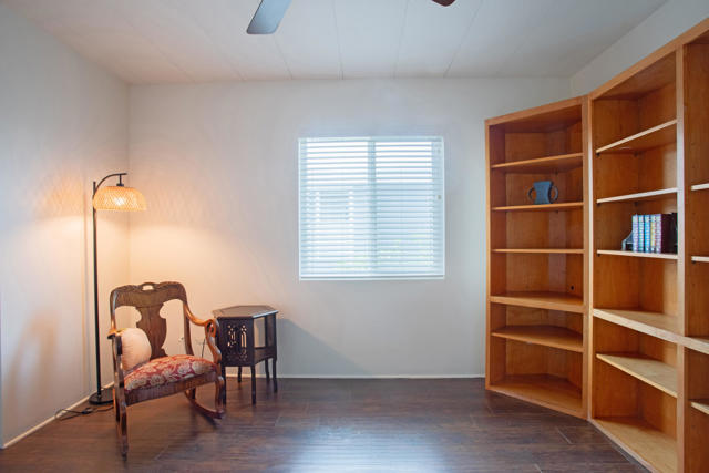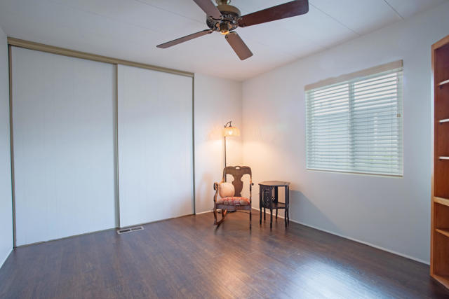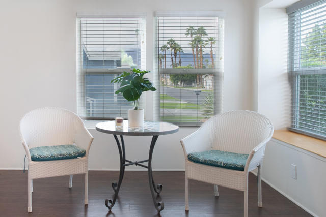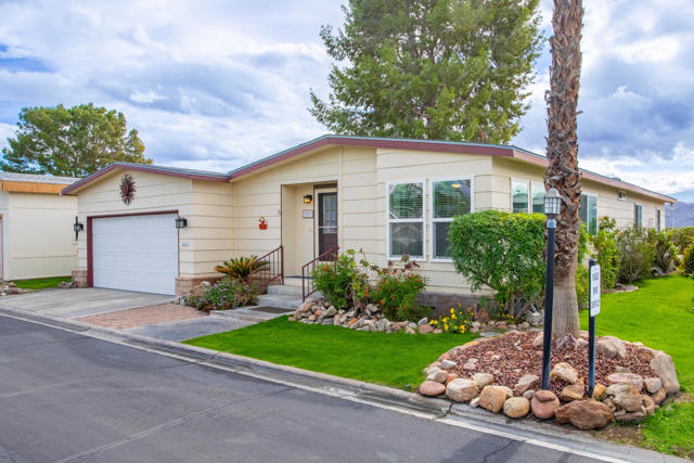 Fantastic opportunity to own in this prestigious senior gated community called desert sands. This is a good sized home with 1340 square feet of living space. Inside this home is drywalled and has laminate flooring throughout. Windows and doors are dual paned. Inside door are six paneled. Perfect location with no one behind except outstanding views of the southern and western mountains. This home comes with a galley kitchen, master bath with tub and shower, master walk-in closet, laundry room and a direct access two car garage. This home would be a great home away from home or a full time residence.