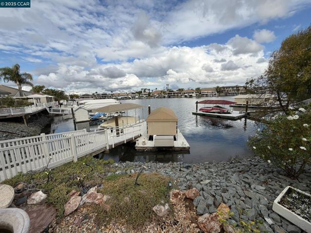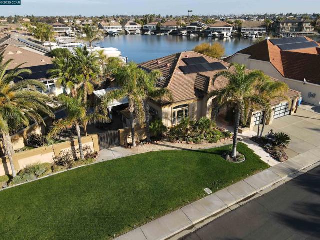 Your dreamed home is on your way. Single story set on a premium lot of 13,000 sq.ft. Entering you are greeted by an open floor concept with luxurious amenities, volume ceilings, huge windows that enhance the outdoor vistas. The living room boasts a custom fireplace, adequate space for a pool table and enjoy the adjacent media room with built-ins for entertainment equipment/display shelving. Step into the chef's kitchen featuring extensive chiseled granite counters, tiled custom backsplash, large breakfast bar with bar stools , huge walk-in pantry, SS appliances, wine frig & much more! Primary suite, a peaceful sanctuary with custom fireplace, luxurious bath featuring two separate vanities, chiseled granite counters, jacuzzi/spa tub, huge shower with travertine accents and mammoth closet space with organizers. Amazing outdoor amenities--a private garden off great room adds a covered porch, brand new gazebo for exterior dining/entertaining, splashing fountain, flower beds. Extensive deck across back of home gives boundless water views, access to 1 covered boat dock with hydro-hoist lift and room for 2nd dock. Paradise Living awaits . New Solar system with Tesla Backup Gateway, New Garage doors and garage flooring. All toilets are updated with Toto Washlet.