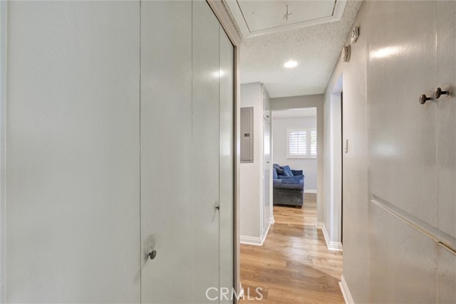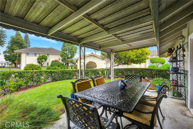 Welcome to one of the most coveted homes in all of New Horizons—an exceptionally rare single-story Bungalow-style end unit, one of only 42 in the entire 600-unit community. Opportunities to own one of these highly prized residences are incredibly limited, as they uniquely offer true single-family style living within a vibrant 55+ resort environment. With no one above, only one shared wall, a private front courtyard, and an expansive backyard patio, this bungalow delivers privacy, comfort, and an indoor-outdoor lifestyle seldom found in condominium living. Beautifully remodeled and meticulously maintained, the home showcases newer LVP flooring, fresh interior paint, plantation-style vinyl shutters on all windows and both sliding doors, dual-pane windows, and two sliding doors that allow abundant natural light throughout. The renovated primary bathroom features a new vanity, updated lighting, and a beautifully redesigned shower, while the flexible additional room offers the versatility to create a second bedroom, home office, craft room, or peaceful retreat tailored to your needs. The bright and inviting kitchen includes new stainless steel appliances, generous cabinetry, and a convenient layout that connects seamlessly to the dining and living areas, where a charming stone fireplace serves as a warm and welcoming focal point. Additional upgrades include a new water heater, refreshed fixtures, wheelchair accessibility, thoughtful ease-of-living enhancements, and the reassurance of a recently replaced roof completed by the HOA. Ideally positioned near street access and convenient parking, the home also includes an assigned 1-car garage located close by. The private rear patio overlooks tranquil greenbelt views and provides the perfect setting for morning coffee, outdoor dining, or simply enjoying the peaceful surroundings. All of this is located directly across from the community’s Sports Center with pool, spa, gym, sauna, and tennis, and within easy reach of New Horizons’ many amenities, including a scenic 9-hole golf course, putting green, clubhouse, library, picnic areas, and ballroom. This is one of the most desirable and rarely available floor plans in New Horizons—beautifully updated, move-in ready, and a truly exceptional opportunity that is not to be miss