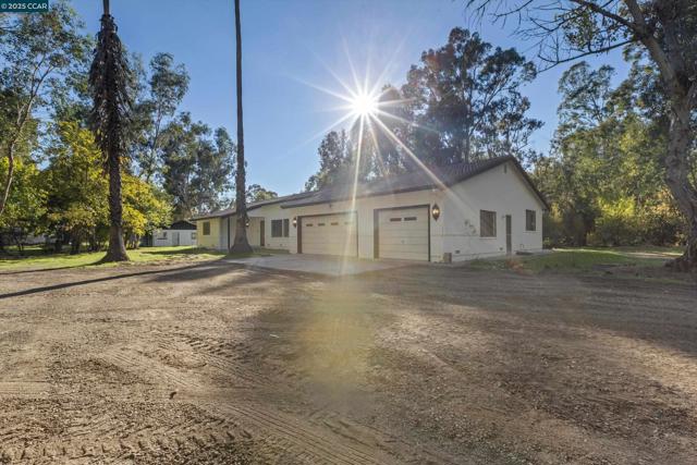 Discover 7441 Leisure Town Road. A rare opportunity to own a secluded Spanish style residence, set on 4.64 sprawling acres. The expansive level-lot features a mix of wooded and cleared areas. Whether you envision a family compound or room to roam with horses and animals, this property provides versatility and endless future development possibilities. Tucked away from the main road, this single-story 4-bedroom 3-bath residence offers approximately 3,137 sq. ft. of spacious living. The bright living-room flows seamlessly into the formal dining room. Family room boasts a wood burning fireplace. Dual suites, make it perfect for guest and multi-generational living. The spacious 3-car garage with interior access adds convenience and storage. Thoughtful updates include new vinyl flooring and carpet, upgraded HVAC unit, freshly painted interior & exterior. The property includes a fully equipped kennel building with its own dedicated septic system and separate utility meter. Although it is not currently in operation, the space offers flexible use and is Ideal for a workshop or hobby area. The setting evokes an exceptional blend of privacy and sense of retreat/country living while remaining just minutes from downtown Vacaville & commuter routes.