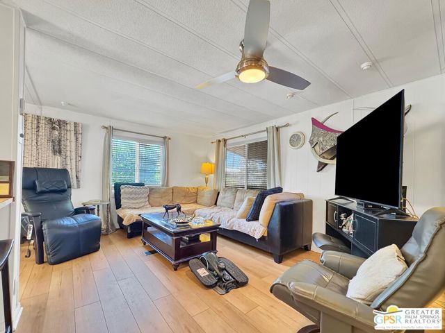 Discover this beautifully maintained 2 bed, 2 bath and move-in ready 1,152 sq. ft. mobile home nestled in the highly desirable Palmdale Estates 55+ community in Indio, CA. Perfectly upgraded and thoughtfully designed, this charming residence offers a seamless blend of comfort, modern updates, and effortless style ideal for full-time living, a vacation retreat, or investment. Recent upgrades include a new A/C system installed last year, an updated water heater approximately 1.5 years ago, and completely renovated plumbing throughout the home. The beautiful laminate flooring adds a sleek, durable, low-maintenance touch, complemented by a renovated bathroom with a contemporary look. Inside, you'll find a bright, open floor plan with spacious living areas perfect for relaxing or entertaining. The well-appointed kitchen features modern appliances and ample counter space, making meal prep enjoyable. The primary bedroom offers a tranquil retreat with generous closet space and a private en-suite bath, while the guest bedroom is versatile ideal for visitors, a home office, or hobbies. Outside, the backyard is a true highlight ready for entertaining or unwinding under the stunning desert skies. Low-maintenance landscaping makes outdoor living effortless, and the generous outdoor space is perfect for dining al fresco, hosting gatherings, or enjoying peaceful evenings. This home provides easy access to local amenities, shopping, dining, and world-famous events like the Coachella Valley Music and Arts Festival. Whether you're seeking a comfortable full-time residence or a relaxing vacation getaway, this property truly checks all the boxes. Don't miss your chance to own this exceptional, updated home in Palmdale Estates schedule your private showing today and experience everything this fantastic property has to offer!