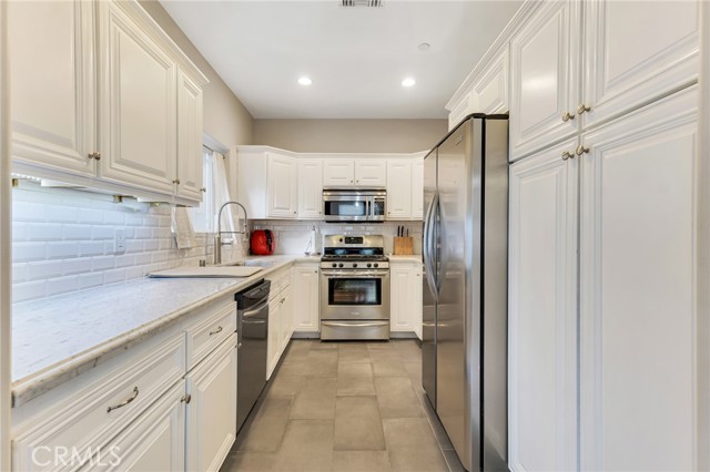 Seize this rare opportunity to own one of just five exclusive, tri-level townhomes within a secure, gated community in highly sought-after Studio City. This home flawlessly blends the space of a house with modern condo convenience, offering three spacious bedrooms and three full baths. A striking custom front door entry and beautiful two-tone staircases greet you, setting a sophisticated tone. The generous main-level living room features a cozy gas fireplace and sliding doors opening to a private patio, perfect for relaxing outdoors. The well-appointed kitchen is both functional and stylish, boasting sleek white custom cabinetry, durable stone countertops, and a full suite of stainless steel appliances. Upstairs, the expansive primary suite is a true retreat, featuring its own elegant gas fireplace and mantle, a large walk-in closet, and a spa-like full bath with a relaxing soaking tub and separate glass-enclosed shower. Convenience is assured with a full laundry area located upstairs. The home also includes two additional bedrooms and bathrooms, along with the incredible practical amenities of two tandem parking spaces and a separate, large private storage space. This is the pinnacle of turnkey luxury and privacy in the heart of Studio City.