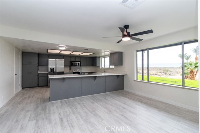 Welcome to your desert oasis—this fully remodeled 4 bed, 2 bath home sits on over 3.5 acres in a peaceful, private area of Needles, CA. Just a short walk to the Colorado River, this property offers both tranquility and convenience with panoramic mountain views, gorgeous sunrises, and protection from the west sun thanks to the structure being thoughtfully built partially underground. Inside, you’ll love the spacious open-concept kitchen featuring solid surface countertops, stainless steel appliances, and plenty of room for gathering. The cozy living area is centered around a warm fireplace, perfect for relaxing evenings. All spaces have been tastefully remodeled, making this home truly move-in ready. The land itself offers endless possibilities—room to expand, add workshops, store toys, or create your dream outdoor setup. A private well provides independence and cost savings, while the quiet surroundings offer a true escape. Whether you’re looking for space, views, or proximity to the river, this property has it all. Don’t miss out on this rare find!