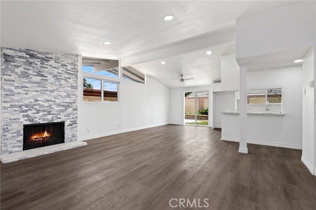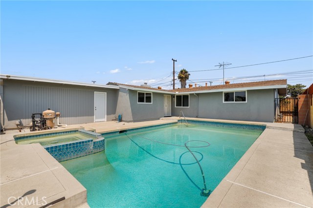 Move-in ready and completely renovated, this single-story pool home in a terrific Anaheim neighborhood offers 4 bedrooms and 2 bathrooms with 1,375 sq. ft. of living space on a 6,000 sq. ft. lot. Features include: new interior and exterior paint, new dual-pane windows, new laminate plank flooring, new custom baseboards, new kitchen, new stainless steel appliances, updated bathrooms, new ceiling fans, new hardware, and new fixtures. The interior is open and spacious, with gorgeous vaulted, beamed ceilings, recessed lighting, and complete updates throughout. Enter through custom double doors into the living room, which features a floor-to-ceiling stacked-stone fireplace. The living room opens to the dining area, which flows into the brand-new kitchen showcasing quartz counters, a full wall tile backsplash, white cabinetry, stainless steel appliances, and a deep-basin stainless steel sink. This home includes 4 bedrooms, including a large primary suite with a private bathroom and a walk-in closet with built-in shelving. A full-size hall bathroom serves the 3 secondary bedrooms and guests. Enjoy the private in-ground swimming pool and spa located at the front of the home, offering plenty of privacy thanks to block-wall fencing. Additional features include a 2-car garage, driveway parking for up to 5 cars, and a private backyard with a grass area, concrete patio, and garden bed. Conveniently located near shopping, dining, schools, and everything beautiful Southern California has to offer. Schedule your private tour today!