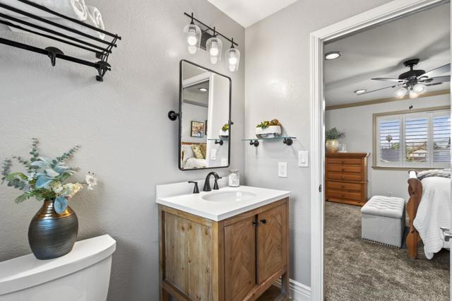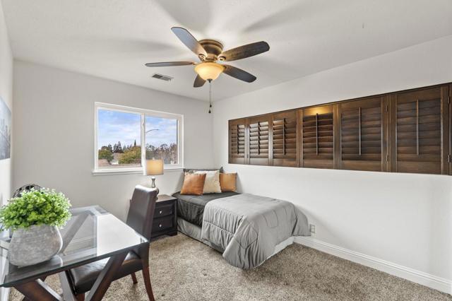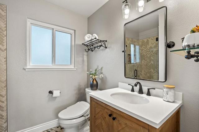 Welcome to this updated home on a quiet cul-de-sac in the vibrant Evergreen area of San Jose. Step through the custom front door to a freshly painted comfortable interior. Featuring a primary bdrm with walk-in & wardrobe closets with organizers & a remodeled spa-like bthrm. Two other bthrms have also been updated with new modern finishes. The bright kitchen with glass sliding door & sunny garden window above the dbl-sinks is equipped with a gas range, abundant cabinets w/ pantry storage, & provides a cozy eat-in area, perfect for casual dining. Enjoy the open floor plan with a dining area in the living rm, enhanced by a vaulted ceiling & wall-mounted TV. Hardwood & tile flooring add to the contemporary & functional layout. Central A/C & heating ensure year-round comfort, and the fireplace in the living area creates a warm, inviting atmosphere with a charming mantle. The dbl-paned windows throughout invite in natural light & feature stylish plantation shutters. An attached 2-car garage boasts custom epoxy flooring & more storage. The spacious, low-maintenance yards are enhanced with pavers, a custom-built patio cover, lawns, fenced side yard, and shed. Ideally located within the area's best school districts, & conveniently located near shopping, restaurants & easy commute routes!