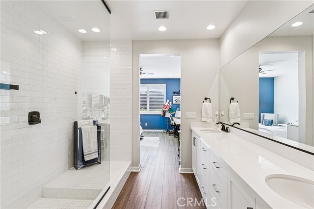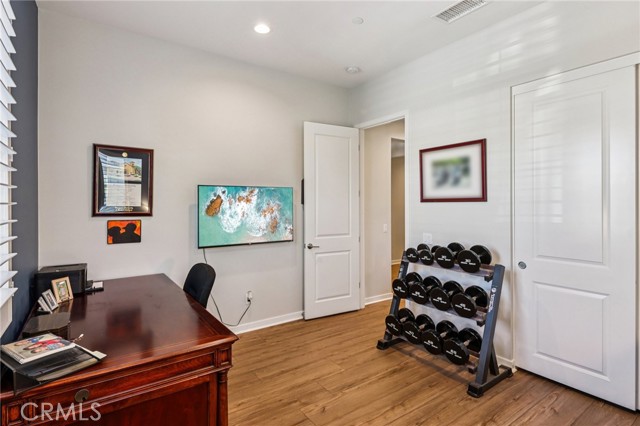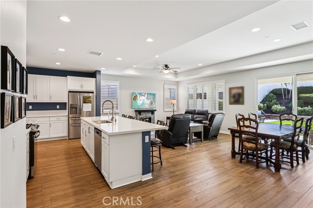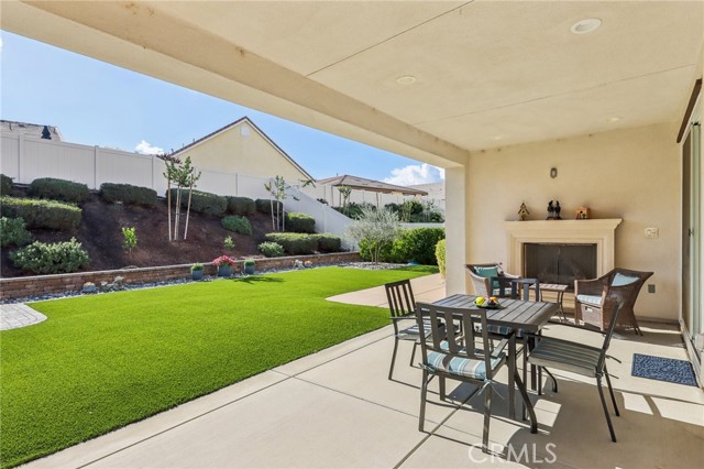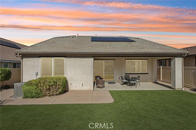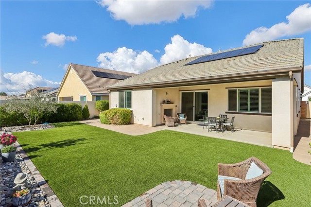 ESPLANADE 55+, LUXURY, OWNED SOLAR, PRIVATE, GATED COMMUNITY, TURNKEY, UPGRADED. Experience elevated 55+ living in this beautifully upgraded Arise Plan 2, combining modern design, energy efficiency, and resort-style comfort. The home offers 3 bedrooms, 2.5 baths, and an open-concept layout with sound-proof Pecan luxury vinyl plank flooring and plantation shutters throughout. The chef’s kitchen showcases a large quartz island, premium stainless appliances, and abundant storage - ideal for entertaining or casual gatherings that flow seamlessly into the great room and outdoor spaces.The primary suite delivers a tranquil retreat with an oversized walk-in shower, dual vanities, and an expansive walk-in closet. Through the sliding glass doors, step into a stunning backyard oasis with a California room, built-in gas fireplace, recessed lighting, and low-maintenance, pet-resistant turf. The outdoor space is enhanced by a custom retaining wall, terraced landscaping, mature hedges, a sun deck, and custom pavers wrapping both sides of the home - creating a truly serene and private retreat. A storage shed adds functionality without sacrificing style. Residents of Esplanade Sommers Bend enjoy exclusive resort amenities including a pool and spa, pickleball and bocce courts, outdoor kitchen and BBQ areas, fire pit, gardens, and a private clubhouse with fitness center, billiards, and indoor lounges with kitchen facilities - all just minutes from Temecula Wine Country and local shopping.