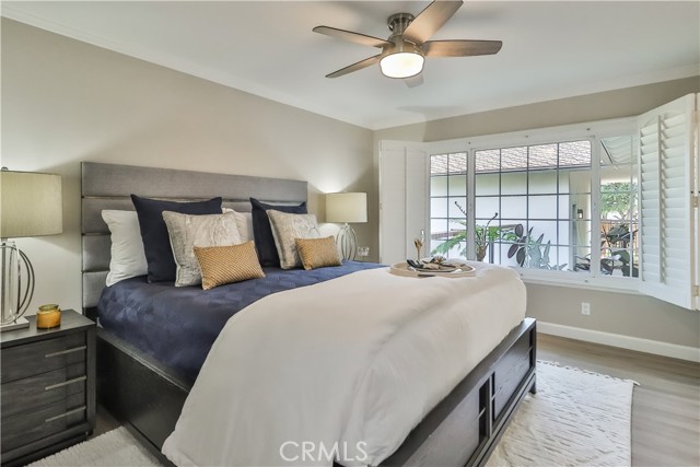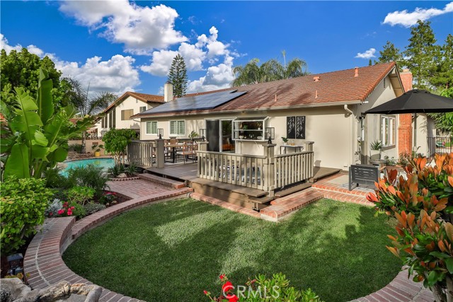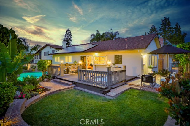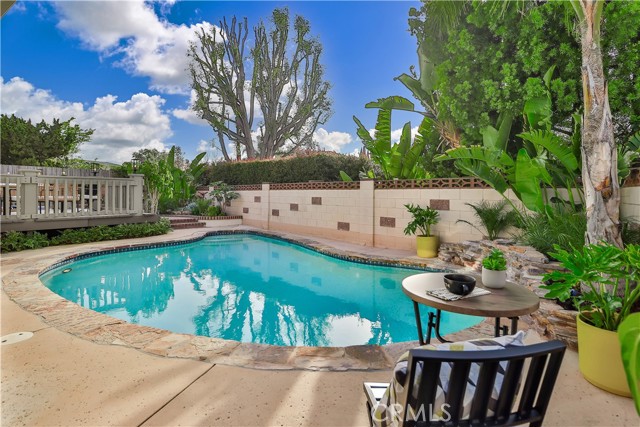 Charming Single-Story Stunner in Highly Desirable Wildwood Neighborhood. Discover this beautifully updated 4-bedroom, 2-bathroom home nestled in the coveted Wildwood neighborhood. Situated on a peaceful cul-de-sac, this single-story gem offers a perfect blend of modern upgrades and timeless charm. From the moment you arrive, you'll be captivated by the mature landscaping, brick hardscape walkways, and fresh exterior paint. Inside, the home is filled with natural light, plantation shutters, recessed lighting, and stylish new fixtures, including ceiling fans in each room. The inviting formal living room boasts vaulted ceilings, a cozy brick gas fireplace, and built-in bookcases, creating an ideal space for entertaining or unwinding. The open-concept layout flows into the dining area and kitchen, where you'll find granite countertops, stainless steel appliances, solid wood cabinets, and a bay window with partial Wildwood Mesa views. A large walk-in pantry adds extra storage and convenience. The primary suite is a peaceful retreat with a walk-in shower and serene atmosphere. The additional bedrooms and updated bathroom feature freshly painted vanity and elegant crown molding. Step outside to the tropical entertainer’s backyard, featuring a newly painted deck with a built-in jacuzzi, a fully serviced pool, and a tranquil Zen fountain and waterfall. Several outdoor seating areas provide the perfect setting for relaxation or hosting gatherings. This home also includes solar panels for energy efficiency, built-in storage cabinets in the garage, and a spacious 2-car garage with ample parking. Ideally located just a short walk to tennis and basketball courts, soccer fields, and scenic hiking trails in Wildwood Park, with Wildwood Elementary School nearby, this home offers an exceptional lifestyle. Don't miss this rare opportunity to own a meticulously maintained home in one of Thousand Oaks' most sought-after neighborhoods!