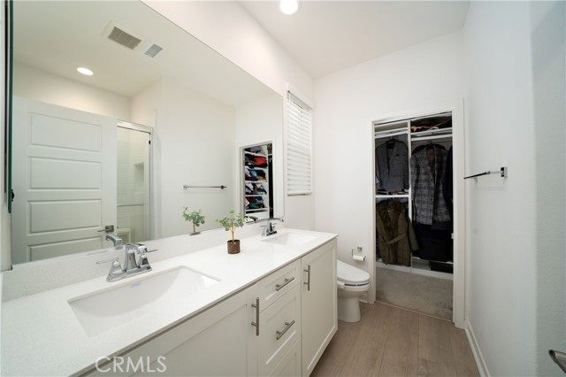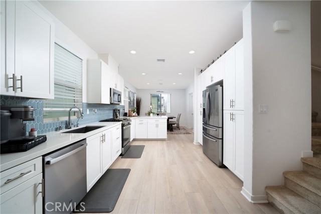 Discover elevated Southern California living in this almost-new, exquisitely upgraded detached residence in the coveted, amenity-rich enclave of Rancho Mission Viejo. Welcome to 242 Goldfinch, a 2023 Tri Pointe masterpiece tucked within the intimate and sought-after Wildrose neighborhood of Rienda. A gated, freshly landscaped front yard with manicured hedging and lush, low-maintenance turf creates a polished first impression before you step inside. The oversized tandem two-car garage offers direct access and showcases epoxy flooring, a whole-house water softener, dual EV chargers, a tankless water heater, and an 8-panel paid-in-full solar system, ensuring comfort wrapped in efficiency. Ascend to the main living level where sunlight moves through an elegant open-concept layout. This elevated space is artfully composed of a dining area, inviting living room, powder room, and balcony with idyllic community views. The designer kitchen is a showpiece, featuring soft-close cabinetry, chic open shelving, a contemporary tile backsplash, stainless steel appliances, and a generous single-basin sink, all complemented by premium wood-look luxury vinyl plank flooring. The upper level reveals two serene bedroom suites alongside a conveniently placed laundry area (washer, dryer, and refrigerator all included). The secondary suite enjoys its own ensuite private bathroom, while the indulgent primary retreat offers a personal balcony, dual sinks, and a custom-organized walk-in closet designed for effortless organization. Living in Rienda grants access to a world of resort-inspired amenities: sparkling pools, refined clubhouses, miles of trails, verdant greenbelts, and the stunning Boulder Pond outdoor escape. As a resident of Rancho Mission Viejo, you also inherit the exceptional offerings of Esencia and Sendero, with coastal treasures like Old San Juan, Dana Point, and San Clemente just moments away. Move in without delay and experience the sophistication, ease, and modern elegance that define life at 242 Goldfinch.