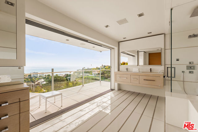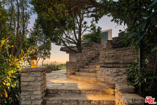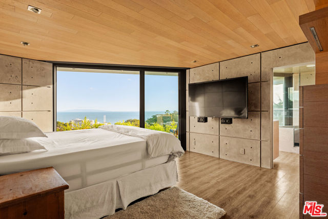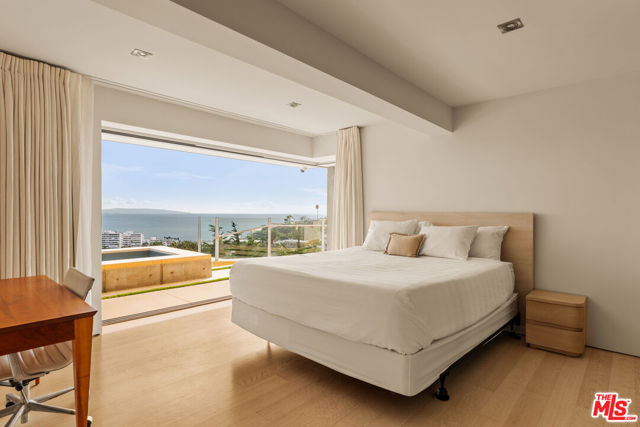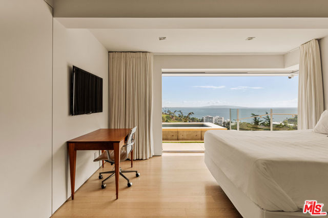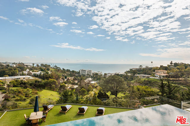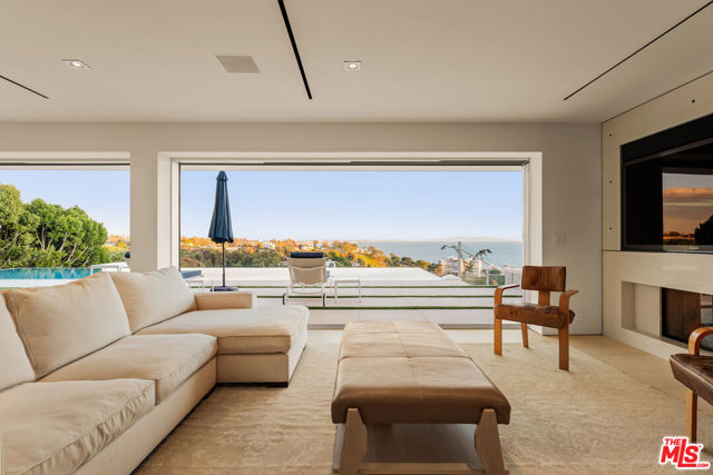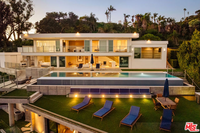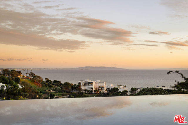Perched high within the prestigious enclave of the Pacific Palisades and less than two minutes off Sunset Blvd. , Mirage is not merely a residence; it is an architectural dialogue between raw strength and ethereal beauty. This contemporary tour de force commands one of the most enviable vantage points on the coast, offering a front-row seat to the sweeping arc of the Santa Monica Bay and the endless blue horizon sitting on more than half acre of land. Defined by its structural concrete aesthetic softened by warm organic woods, Mirage offers a sanctuary of privacy, luxury, and seamless indoor-outdoor living. Upon entry, the home establishes a tone of sophisticated industrialism. Grand architectural concrete walls are juxtaposed against honey-toned oak flooring and a floating pivoting entry door, creating a gallery-like atmosphere that washes the space in natural light through strategic skylights. The main living level is designed for the ultimate entertainer. An open-concept floor plan dissolves the boundary between the interior and the exterior via massive, retractable floor-to-ceiling glass walls. The gourmet chef's kitchen is a study in minimalism, featuring custom blonde-wood cabinetry, sleek quartz surfaces, and a suite of top-tier integrated appliances. A sculptural staircase serves as a functional piece of art, anchoring the space. The residence hosts five sanctuary-like suites designed to induce tranquility and a fully separate guest-house featuring two bedroom suites and kitchen. The primary bathroom rivals the world's finest spas, featuring a sunken soaking tub, a frameless glass steam shower, and pristine tiling, all bathed in soft light. Every room is positioned to capture the ocean breeze and the golden California sun. The exterior of Mirage is a multi-tiered paradise designed to celebrate the California lifestyle. Expansive architectural terraces feature lush, manicured green roofs that visually blend the structure into the hillside. The crown jewel is the stunning infinity-edge pool and jacuzzi that appears to spill directly into the Pacific Ocean. Whether lounging on the sun deck, dining al fresco against a backdrop of the coastline, or enjoying the private, grassy lower garden with its charming play area and stone walking paths, the connection to nature is absolute. The residence has an attached 2-car garage and comes with a generous gated driveway allowing you to park an additional of eight cars. Mirage is more than a home; it is a vantage point for life at its most spectacular. Experience the intersection of modern art and nature at 467 Paseo Miramar in Pacific Palisades.