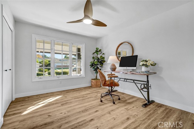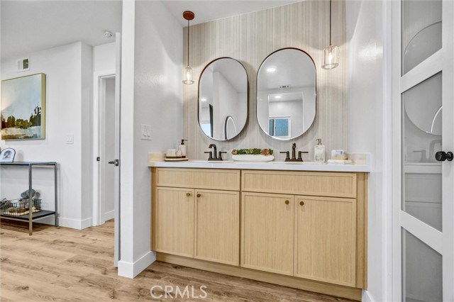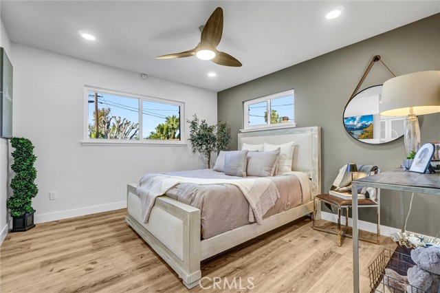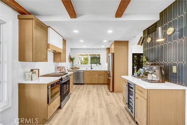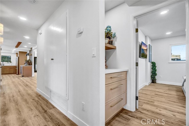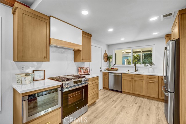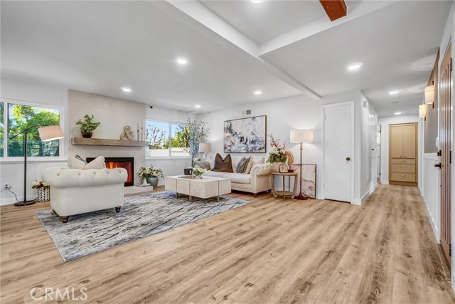 Welcome to 3032 N Oceanview St, a warm and inviting hillside home where sunlight, mountain views, and thoughtful craftsmanship come together. Perched above the street on a nearly quarter-acre flat lot, this single-level home captures peaceful views of the snow-capped San Gabriel Mountains and the gentle sway of a majestic 63-year-old live oak tree—a natural landmark that brings character and calm to the entire property. Inside, the home opens into a bright, flowing layout with 3 bedrooms and 2 bathrooms across 1,456 sq ft. Every detail has been thoughtfully reimagined. Warm white oak slim shaker cabinetry, Milton Oak shaker soft-close kitchen cabinets, sparkling K9 crystal pendants, and beautiful wood casement windows create a sense of comfort and timeless style. The solid mahogany SlimLite front door sets the tone the moment you arrive, while the custom bar—with its wine cooler, black-and-gold sconces, and unique Buster + Punch London toggle switch—adds a uniquely elevated touch. Both bathrooms have been updated with smart DeerValley one piece fixtures, blending modern convenience with clean, minimalist design. Behind the walls and above the ceilings, important upgrades have already been taken care of, including a 200 AMP electrical service panel and a new A/C condenser unit for improved comfort and peace of mind. The home also features a Spanish S-tile roof, adding durability and classic character to the exterior. The expansive 10,400 sqft lot offers rare usability for a hillside property. The backyard feels open and serene, shaded by the mature oak tree, with ample space to entertain, garden, or simply relax. A dedicated dog run and a wide side area with room for RV parking add everyday practicality, while the elevated setting enhances privacy and brings in beautiful natural light throughout the day. From morning coffee with mountain views to peaceful evenings beneath the oak tree, this home offers a sense of calm and comfort that is hard to find. Thoughtfully updated inside and out, it provides a turn-key living experience on one of Orange’s most desirable hillside streets. Tucked into a quiet pocket of well-maintained homes, 3032 N Oceanview St sits in a location that rarely becomes available—where neighbors stay for years, lots are generous, and every home feels privately set. It’s a unique combination of elevation, views, privacy, and usable land that gives the neighborhood a special character and an understated, exclusive feel.