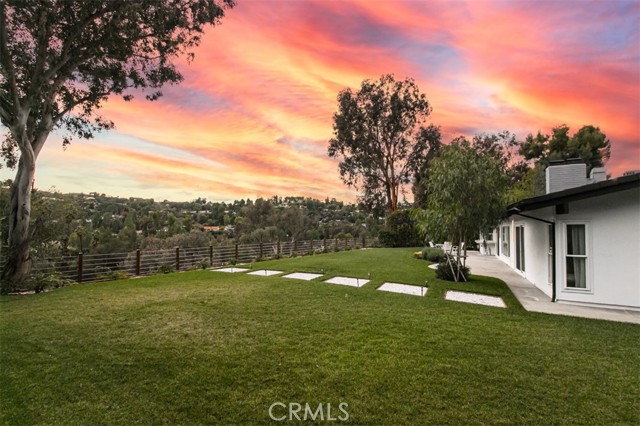 Experience elevated living in this exceptional 3-bedroom, 2.5-bath single-story residence located south of Ventura Blvd in the prestigious Tarzana hills. Resting on over 20,000 sq ft of prime land, this home captures spectacular panoramic views and showcases beautifully renovated grounds along with an updated exterior that seamlessly blends elegance with modern appeal. The extensive lot offers incredible flexibility design a custom outdoor oasis, add a pool or view deck, expand the footprint, or build an ADU to enhance the property’s value and functionality. Inside, the open single-level floorplan is filled with natural light, offering effortless flow between the living, dining, and outdoor spaces. Large windows frame the stunning hillside scenery, creating a warm and inviting atmosphere throughout. Whether you’re relaxing in the serene primary suite, entertaining guests, or enjoying quiet evenings at home, the property’s layout is designed to maximize comfort and connection to the surrounding landscape. Combining rare views, expansive land, exceptional privacy, and thoughtful updates, this home represents one of Tarzana’s most desirable offerings. A true blend of serenity, potential, and elevated hillside living this is Tarzana living at its finest.