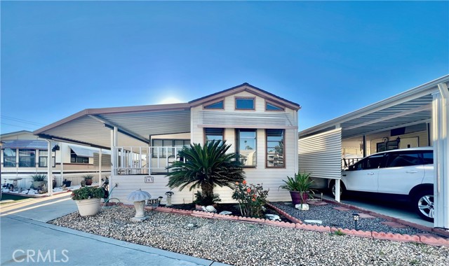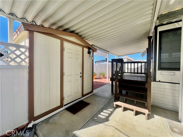 Own your land in the highly desired Mountain Shadows RV Resort, a 55+ gated community, with this charming park model offering approximately 600 sq. ft. of living space plus a full-length enclosed patio room perfect as a den or second bedroom with access to the back porch and yard. Enjoy a covered front porch for morning or afternoon beverages, and step inside through sliding glass doors to an open kitchen with full-size refrigerator, freestanding electric stove, garbage disposal, and abundant cabinetry, seamlessly connected to the living and dining area with custom window coverings. The master bedroom features wardrobe closet doors and built-in cabinetry, while the bathroom boasts a vanity sink and upgraded step-in shower stall. Laminate wood flooring runs throughout, complemented by central AC/heating and an electric hot water heater. An improved storage shed includes washer, dryer, and an additional hot water heater. Situated on an oversized “A” lot of approximately 2,614 sq. ft., the property also offers a covered carport, low-maintenance landscaping, brick pavers, and both front and back porches. Community amenities include two clubhouses with heated saltwater pool, spas, indoor and outdoor kitchens, auditorium, billiard room, shuffleboard, gyms, laundry facilities, restrooms and showers, horseshoe pit, cornhole, ping pong tables, and more. With low taxes and HOA fees of about $292 per month covering water, sewer, trash, basic cable, and internet, this turnkey home is move-in ready—retirement at its finest!