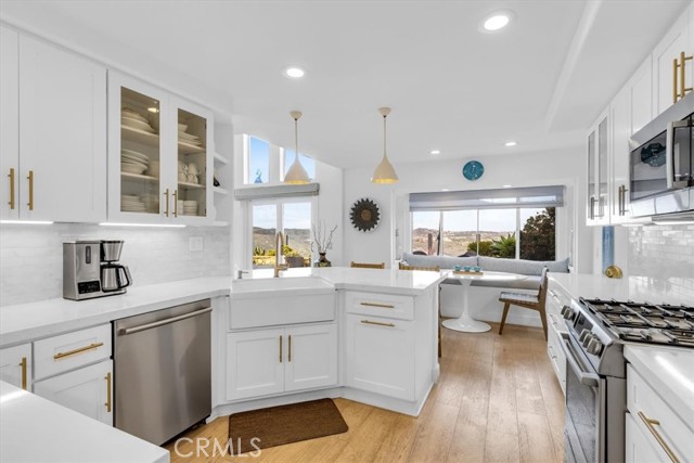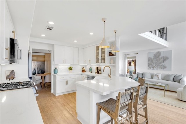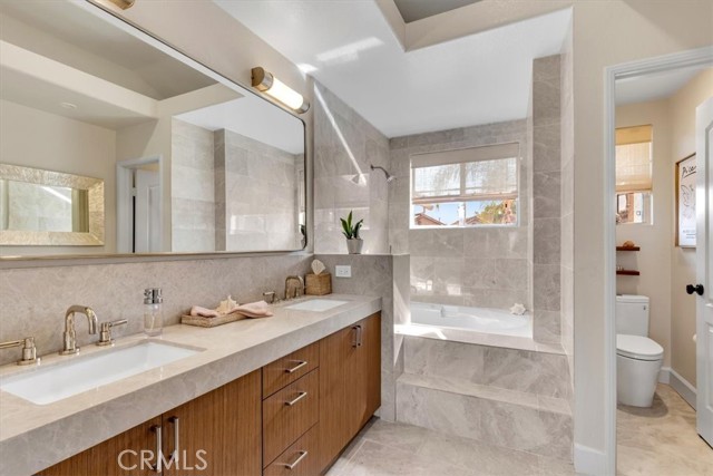 Phenomenal panoramic views welcome you to this refined two bedroom, two and one-half bath home, thoughtfully remodeled with high-end finishes throughout. Elegant engineered flooring flows through the living spaces, complementing a designer kitchen appointed with crisp quartz countertops and updated cabinetry. The bathrooms feature marble counters and elevated fixtures that create a spa-like experience. Set on an impressive wrap-around lot, the exterior offers exceptional space for entertaining, unwinding in the private spa, or simply enjoying the phenomenal panoramic views. With scenic hiking trails located nearby, the home provides a perfect blend of luxury living and Southern California outdoor lifestyle.