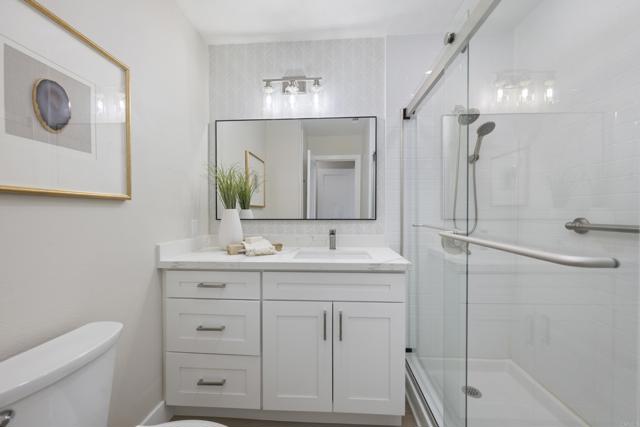 VIEWS, VIEWS, VIEWS! Get ready to fall head over heels for your new slice of paradise within the sought after Oceana community! This isn't just a home, it's a lifestyle upgrade filled with modern luxury and laid-back coastal vibes. Recently remodeled with tons of love and attention to detail, this gem is all set to redefine your idea of dream living. Set in one of the most peaceful locations within the community, this home overlooks the lush Emerald Isle Golf Course, where gentle breezes and glowing amazing sunsets views from the living room, bedroom, and front patio can become part of your everyday living experience. Inside, the home is bright, clean, and modern with new luxury vinyl floors, smooth ceilings, recessed lighting, fresh custom paint, and new vinyl windows and sliders that bring in tons of natural light. The modern upgrades continue throughout, including new craftsman style doors, updated cabinetry, quartz counters, and a refreshed kitchen with new backsplash and under cabinet lighting. Both bedrooms enjoy large sliders that open to the patios, creating warm, inviting spaces that are perfect for relaxing. The bathrooms offer a spa feel with a remodeled shower, new glass door, new toilets, and modern mirrors. Custom paneling and accent walls, new baseboards and casings, and updated decora outlets and switches bring a cohesive, coastal feel to the entire home. And the practical upgrades add real value, including a new Flo by Moen smart valve, new shutoff valves, and ceiling fans in both bedrooms. The outdoor spaces offer so much, too. Whether you are savoring quiet mornings or taking in the sunset, the patios offer comfortable spaces to relax or entertain. Exterior improvements include, a newly refaced fence and new vinyl gates for added privacy, updated exterior lighting, new unit numbers, and a new mailbox. The low-maintenance drip system keeps the landscaping simple so you can spend more time enjoying life. Every detail has been thoughtfully selected to create a move-in ready home that feels relaxing and easy to maintain. Pour a glass of wine, breathe in the coastal air, and watch the sky change colors each evening. You can also enjoy the beautiful resort-like community with great amenities including a clubhouse with sparkling pools and spa, pickleball court, RV parking, a dog park, community garden, and hobby spaces such as a woodshop, billiards room, lapidary area, art studio, library, card room, and a large banquet room for gatherings and events. HOA dues also cover water, sewer, trash and front yard maintenance. Conveniently close to Hwy 76, the 78, and both the 5 and 15 freeways, everyday errands, shopping, and dining are all nearby. And best of all, the beach is just a few minutes away! Homes with this level of upgrades, views, and lifestyle do not come along often. Hurry over before it is gone!