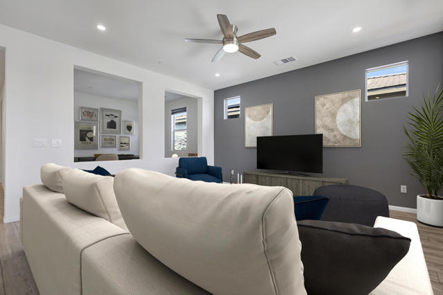 This stunning Reunion floor plan exemplifies perfection with style and functionality at its core. This home maximizes every square foot, offering two bedrooms, two baths, the third bedroom option is currently used as a spacious office. Big addition, a separate builder attached golf cart garage. all adorned with upgraded lighting and sleek blinds. The open floor plan welcomes you with a gourmet kitchen with a large island, designer countertops, a custom-designed backsplash, and premium stainless steel appliances. Flowing seamlessly into the expansive great room, this space is perfect for entertaining or relaxing. A striking 15-foot rolling wall of glass opens to the covered patio, creating a harmonious indoor-outdoor experience. The primary suite serves as a luxurious retreat, complete with dual vanities, a seamless glass-enclosed shower featuring custom tile and a bench seat, plus an oversized walk-in closet. The secondary bedroom, located on the opposite side of the home, ensures maximum privacy. Trilogy ''smart room'' offers both ample work & storage space with the same granite countertops & soft close cabinetry. Step into the south-facing backyard surrounded by pavers and complemented by artificial turf and a large covered patio. This home is packed with premium upgrades, including a spacious laundry room with a Smart Space, completed with Solar and tankless water heater. With its unbeatable location and attention to detail, this home is a must-see! Membership Available.