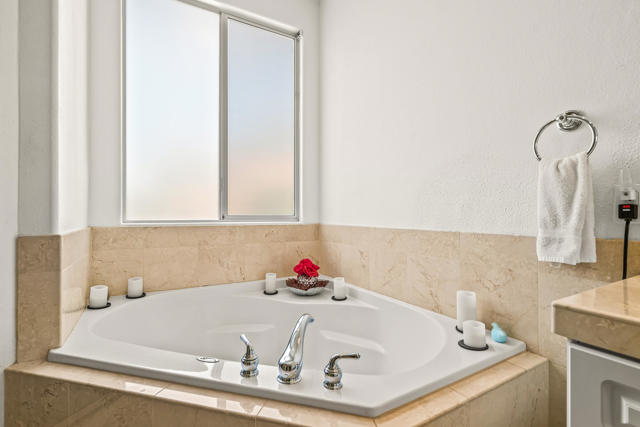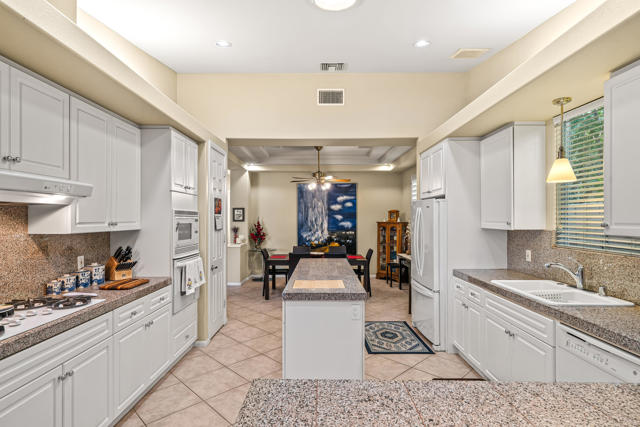 Calling all wine enthusiasts looking to buy in one of Cathedral City's best kept secrets! Homes in Landau Manor are rarely available. No HOA! Owned Solar, a 700 bottle climate controlled wine cellar. This property boasts single level living with over 2,500 square feet located on a large lot with a three-car garage at the end of a quiet cul de sac. Enter the courtyard which offers mountain views to your west that wraps around the entire property, perfect for entertaining. The backyard boasts a pebble-tech salt water pool & spa, built-in BBQ, gas fire pit and covered patio. From the front door you enter the open living areas, both living and family rooms offer fireplaces and soaring ceilings. The kitchen has a breakfast bar, large island that opens to the dining area. There are three bedrooms and baths. The guest bath shower has been re-designed and is handicapped accessible. The large primary suite offers an expansive walk-in closet, vanity with double sinks, separate shower and tub and an abundance of storage. Recent upgrades to the property include new insulation in the attic, insulated garage doors & new door openers, WiFi operated pool equipment.