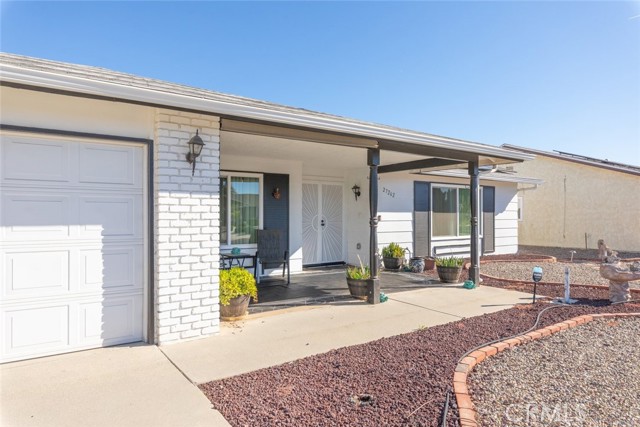 Step into resort-style living in this charming 55+ Menifee community home! Boasting a welcoming two-door front entry with a porch, this single-story residence features 3 spacious bedrooms and 2 bathrooms, all set on a huge lot perfect for enjoying the outdoors. The interior showcases a seamless blend of LVP and wood flooring throughout, with ceiling fans in every room and abundant natural light that highlights the bright, airy spaces. The kitchen is a chef’s delight, offering granite countertops, all-new cabinetry with ample storage, stainless steel appliances, and convenient bar seating ideal for entertaining or casual dining. Gather around the real wood-burning fireplace in the family room, or step into the fully finished sunroom (not included in square footage) for a relaxing retreat that opens onto the backyard oasis. Modern comfort is ensured with a newer AC and furnace. Both the front and backyard have been thoughtfully designed for low-maintenance, drought-tolerant landscaping, complemented by a shed and covered patio for convenience and outdoor enjoyment. Residents of the Sun City Civic Association (SCCA) enjoy unparalleled amenities and a vibrant social scene. From indoor tournament shuffleboard and a fully equipped fitness center to horseshoe pits, two sparkling swimming pools, a spa, lawn bowling, and a variety of social clubs and activities, there’s something for everyone to enjoy. Whether you’re looking to stay active, socialize, or simply relax in a beautiful community setting, this home offers the perfect lifestyle. Don’t miss this rare opportunity to live in a highly sought-after Menifee 55+ community, combining comfort, style, and an array of amenities to make every day feel like a vacation. Schedule your private tour today and experience the charm, convenience, and luxury this move-in ready home has to offer.