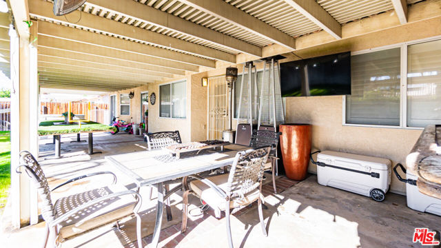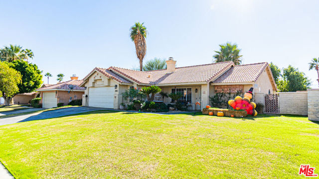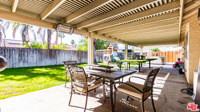 Beautiful 3-Bedroom Home in Quiet North Cathedral City Neighborhood! Located 1 block from Century Park, this home has upgrades & soaring vaulted ceilings throughout. Living room w/ custom rock fireplace/mantle & ceiling fan. Dining area w/ chandelier. Spacious kitchen w/ tile countertops & dine-in bar. Adjacent den/playroom area. Oversized Master Bedroom retreat w/ built-in entertainment center, custom fireplace, & access to backyard. All bedrooms feature wooden shutters. Private backyard area w/ large Alumawood covered patio, children's playset, & grassy area - perfect for entertaining! 2-car garage w/ 220 EV charger & plenty of driveway parking. Garage interior has been fully finished w/ drywall, insulation, custom cabinetry, LED lighting, & mini-split HVAC system. Laundry room w/ storage. Fully paid off 14,000 kw Solar system w/ LG panels & new 200-amp breaker panel. Navien tankless water heater. Newer high-efficiency HVAC system. Just minutes to the best shopping, dining, & entertainment the area has to offer. A unique opportunity to buy a home that has all the big upgrades already done & paid for!