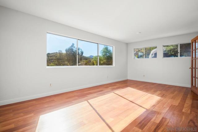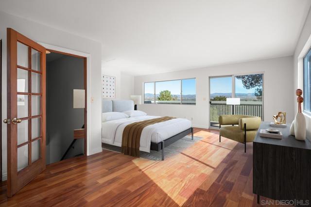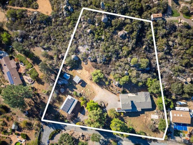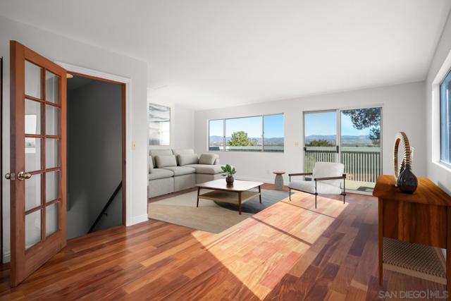Private 2 acre property located in the coveted West End of Ramona offering sweeping mountain views & an updated 2,350 sq. ft. home featuring 3 beds & 2 baths, plus a versatile upstairs flex room w/ view deck that includes an exterior entrance as well as interior access, creating potential for multigenerational living, 4th bedroom, family room, private office, guest retreat, or potential ADU. The property includes an attached 2 car garage w/ covered carport & a detached 1,200 sq. ft. workshop/barn/garage plus gated RV parking. An auxiliary building w/ water, electricity, & sink provides even more functional space. Inside, the spacious kitchen features brand new quartz countertops, new sink, new refrigerator, breakfast bar, bay window, & walk-in pantry. The living room features a wood burning fireplace & picture window showcasing the mountain views. The dining room has direct access to a patio ideal for dining or entertaining. The primary suite offers a spacious en-suite w/ dual vanities, soaking tub, walk-in shower, makeup vanity, & oversized walk-in closet. Extensive upgrades include a brand new roof, owned solar, electric gated entry, new trex decking, newer A/C & water heater, upgraded plumbing, new interior & exterior paint, slate flooring, wood flooring upstairs, new carpet, newer garage door motor & track, & a concrete pad w/ electrical for a future hot tub. Set on 2 acres featuring stunning mountain views, striking natural boulders, & close proximity to local wineries, this property offers the best of Ramona’s relaxed lifestyle & small town charm.