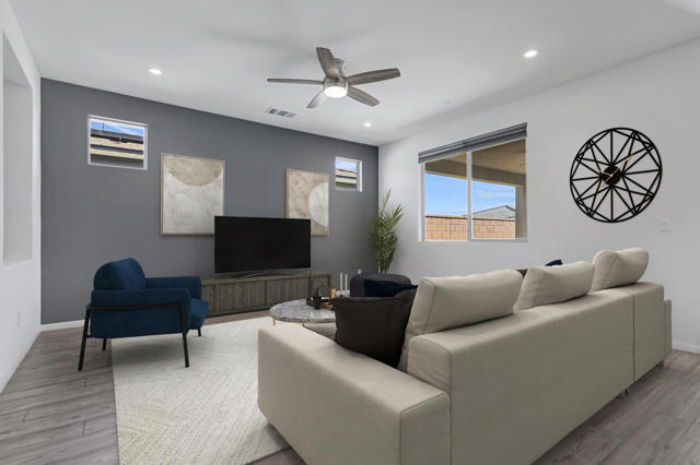This stunning Reunion floor plan exemplifies perfection with style and functionality at its core. This home maximizes every square foot, offering two bedrooms, two baths, the third bedroom option is currently used as a spacious office. Big addition, a separate builder attached golf cart garage. all adorned with upgraded lighting and sleek blinds. The open floor plan welcomes you with a gourmet kitchen with a large island, designer countertops, a custom-designed backsplash, and premium stainless steel appliances. Flowing seamlessly into the expansive great room, this space is perfect for entertaining or relaxing. A striking 15-foot rolling wall of glass opens to the covered patio, creating a harmonious indoor-outdoor experience. The primary suite serves as a luxurious retreat, complete with dual vanities, a seamless glass-enclosed shower featuring custom tile and a bench seat, plus an oversized walk-in closet. The secondary bedroom, located on the opposite side of the home, ensures maximum privacy. Trilogy ''smart room'' offers both ample work & storage space with the same granite countertops & soft close cabinetry. Step into the south-facing backyard surrounded by pavers and complemented by artificial turf and a large covered patio. This home is packed with premium upgrades, including a spacious laundry room with a Smart Space, completed with Solar and tankless water heater. With its unbeatable location and attention to detail, this home is a must-see! Membership Available.