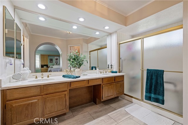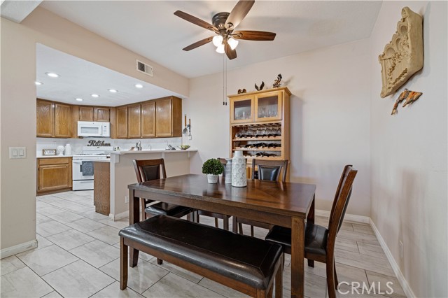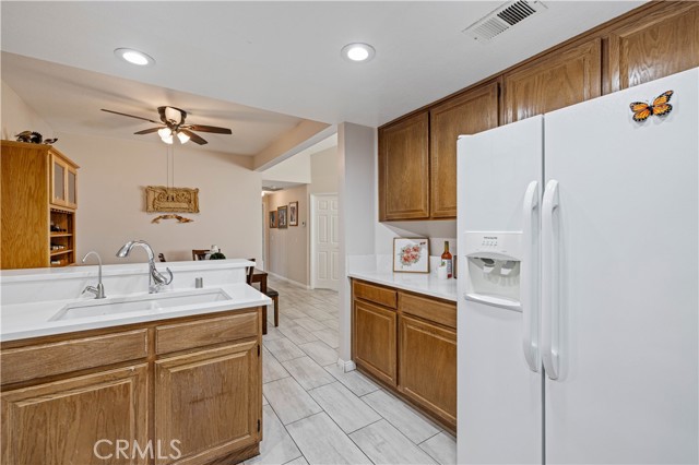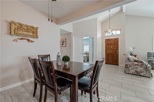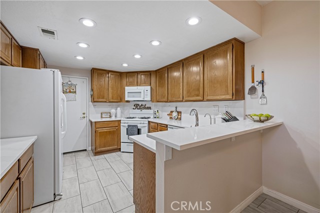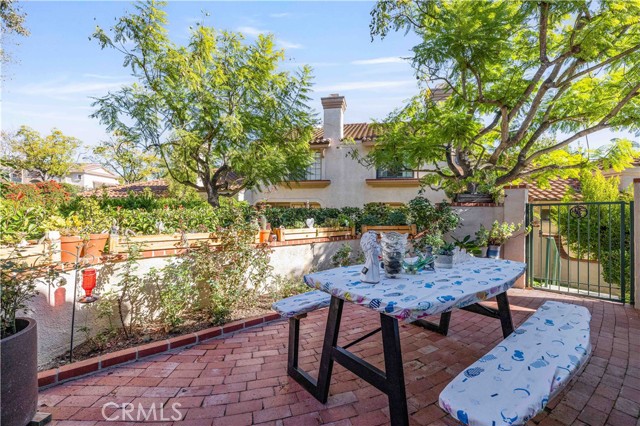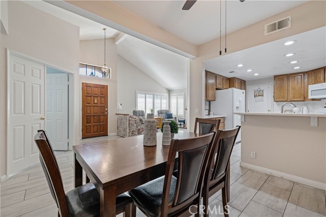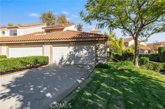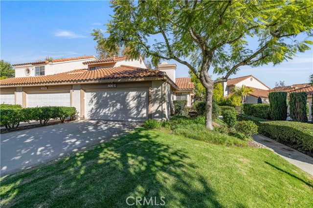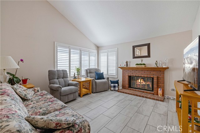 Welcome to your charming single-story retreat—where comfort, convenience, and beautifully maintained surroundings come together. This lovely 2-bed, 2-bath home offers an ideal blend of spacious living and low-maintenance ease. Step inside to a bright living room featuring tall ceilings, an inviting fireplace, classic window shutters, and seamless flow into the large dining area—perfect for hosting family and friends. The expansive kitchen is a standout with stunning white Corian counters, abundant storage, and an open layout overlooking the dining room, making everyday living feel effortless. Enjoy a peaceful brick patio wrapped in lush landscaping, accessible from both an exterior gate and the home—your own private outdoor hideaway ideal for morning coffee or evening relaxation. Both bedrooms are generously sized, and the home includes a 2-car garage plus a full driveway for added convenience. Located in a beautifully maintained community offering a sparkling pool, spa, and gorgeous greenery throughout—all set right on the golf course for serene views and a resort-style atmosphere. This is single-story living at its finest… relaxed, inviting, and ready to welcome you home.