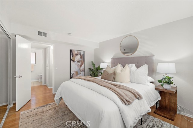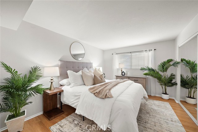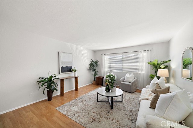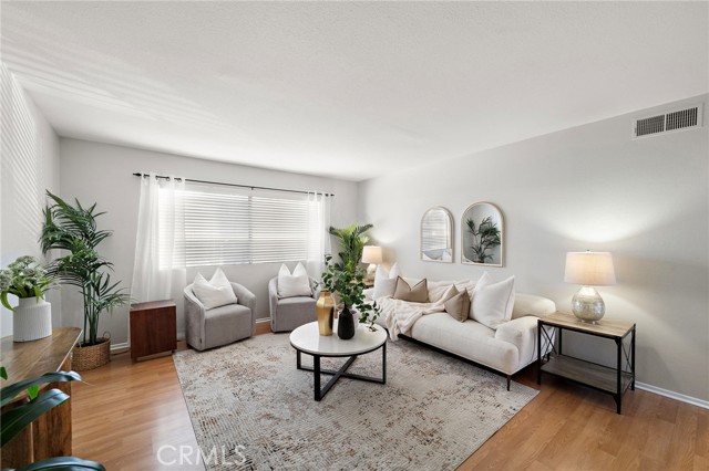 Welcome to this beautifully remodeled 1-bedroom, 1-bath, ground-level condo located in the gated Mira Vista Condominiums community in La Habra. This single-story unit features an open-concept living, updated kitchen with breakfast nook, laminate hardwood floors throughout and a reglazed tub/shower and new countertop. The spacious bedroom offers wall-to-wall mirrored closets for ample storage. Enjoy a private patio with vinyl fencing, featuring both concrete and faux grass area—perfect for relaxing outdoors and space to BBQ. Additional conveniences include central heating and air, gas range and assigned carport parking. Community amenities include pools, spa/Jacuzzi, laundry facilities, and a recreation room. HOA dues of $283/month include water, gas and trash. Located near shopping, dining, parks, and the 57 & 5 freeways within the Fullerton Joint Union High School District. Move-in ready and full of value!