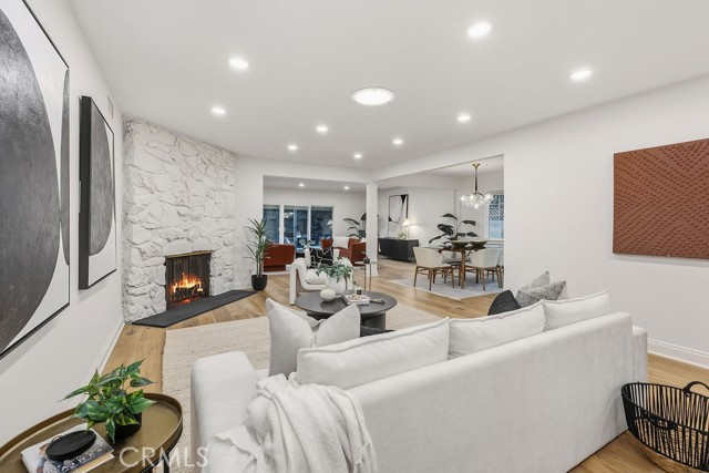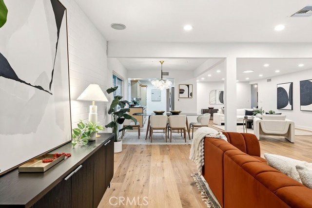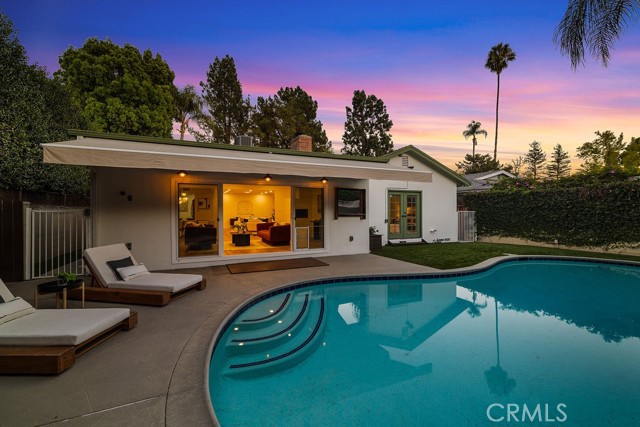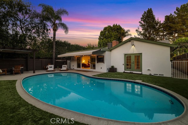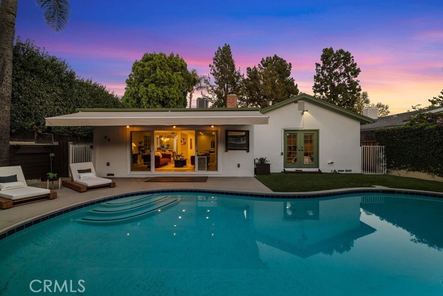 Nestled on one of Valley Village’s most sought-after blocks, this residence blends updated modern style with just the right hint of mid-century charm. This beautiful 3-bedroom, 2-bath home offers over 2,300 square feet of well-appointed living space with a fresh new look! From the moment you walk in, you're greeted by free-flowing space where modern design meets everyday comfort. The open floor plan effortlessly blends the living, dining, and family room extension, offering an ideal setting for hosting friends or sharing family moments. Whether you’re entertaining in the spacious indoor-outdoor living areas or enjoying a quiet evening by the fireplace, this home offers a perfect balance of style, function, and sophistication. The galley-style kitchen caters to those who love to cook, featuring plenty of counter and cabinet space, range, microwave, dishwasher, trash compactor, newer refrigerator, and a greenhouse window. Off the kitchen, you'll find an updated bath and a mudroom, perfect for reducing clutter in the home. The primary suite boasts a spacious lounging area, walk-in closet, and access to the backyard. Two additional rooms and a full bath are located off the hallway. One bedroom includes the bonus of a custom professional-grade sound studio designed by Evolve Acoustics, ideal for podcasters, music producers, VO artists, or anyone seeking a quiet, creative retreat. Outdoors, experience true Southern California living with a sparkling heated swimming pool, eco-friendly grass, pergola with retractable canopy and TV closet, complete with a retractable shading system that provides ultimate comfort during sunny days. The large driveway offers plenty of parking and a 2-car attached garage. Some of the many upgrades performed within the last 10 years include the HVAC system (ducts and insulation) and a 200-amp panel. More recent updates include new interior and exterior paint, updated landscaping, some lighting, newer refrigerator, partial roof replacement, and more. Minutes to Burbank Blvd Elementary, Walter Reed Middle, and North Hollywood High. Dine at local favorites like Harvest Moon Kitchen, Compelling Coffee, Pacific Kosher, Vivi, Tel Aviv Grill, and Hugo’s. Shopping options include Gelson’s and NoHo West. Located minutes from Studio City, Toluca Lake, and major studios, this Valley Village gem blends comfort, creativity, and sophistication in one unforgettable home.